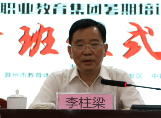 李柱梁在开班仪式上讲话,首先介绍了开设本次职教集团暑期培训班的意义和改革开放以来我国职业教育发展的历史,并指出,职教集团是职业教育集团化办学的积极探索和发展新模式,是架起校企相互合作、相互交流的重要平台,产教融合校企合作是职业教育发展的必由之路。李柱梁最后就本次培训向广大学员提出希望,一是学习学习再学习,二是实践实践再实践,三是自律自律再自律。