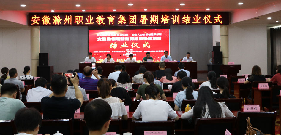 7月29日上午,安徽滁州职业教育集团暑期培训结业仪式在滁举行,校党委书记、滁州职教集团理事长李柱梁,省职业与成人教育学会秘书长、省职教集团联盟秘书处长崔肃,市教育体育局副局长王莉,校党委委员、校长助理、滁州职教集团秘书长穆松,滁州经济技术开发区劳动人事分局局长鄢炳强,中新苏滁高新技术产业开发区社会事业局局长左建民出席仪式,仪式由穆松主持。