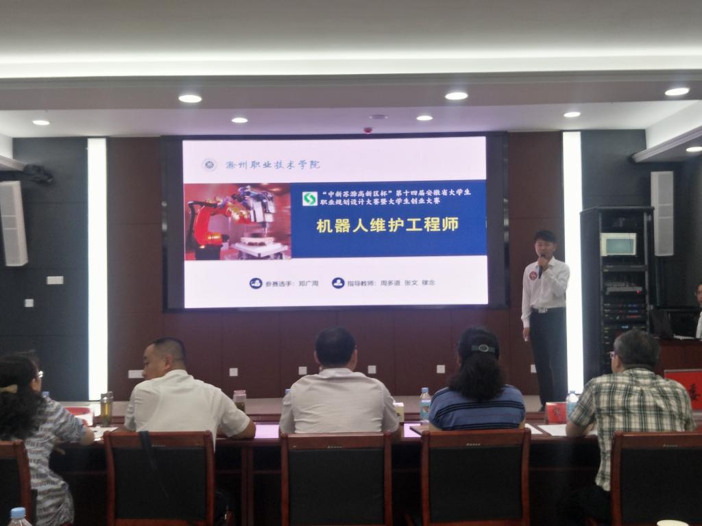 本次参加皖北片半决赛的高校共有27所,每校选派2个项目分别参加职业规划组和创业组的比赛。经过激烈角逐,Beat365张清腾、王雪晨和汪嘉三位同学带来的“菊秆制香”项目荣获创业组第一名,立志成为机器人维护工程师的邓广周荣获职业规划组第三名,双双获得总决赛的入场券。