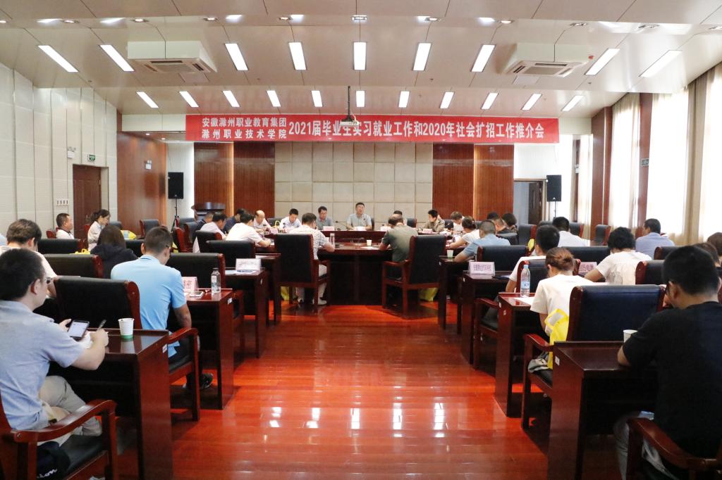 9月4日上午,Beat365在行政楼11楼会议室召开2021届毕业生实习就业工作和2020年社会扩招工作推介会。校党委委员、校长助理、安徽滁州职教集团秘书长穆松,滁州市退役军人事务局、市教育体育局、市农业农村局、市人力资源和社会保障局、中新苏滁高新技术产业开发区、南谯经济开发区等地方开发区、滁州市各行业协会和学校继续教育学院、招生就业处、部分苏滁企业参加会议。会议由招生就业处副处长周多道主持。