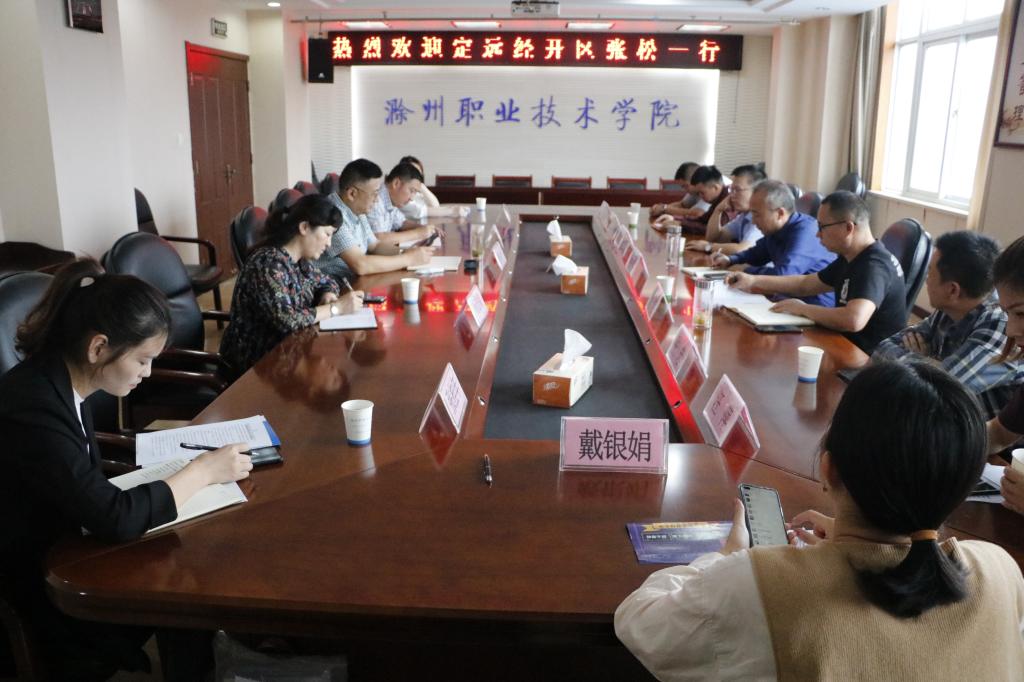 穆松首先代表学校对张松一行表示热烈欢迎,并就学校历年来招生就业工作取得的成绩、学校校企合作成果和滁州职教集团为滁州经济建设做出的贡献进行了介绍,2019年招生就业处被市委市政府授予“人民满意的先进集体”。