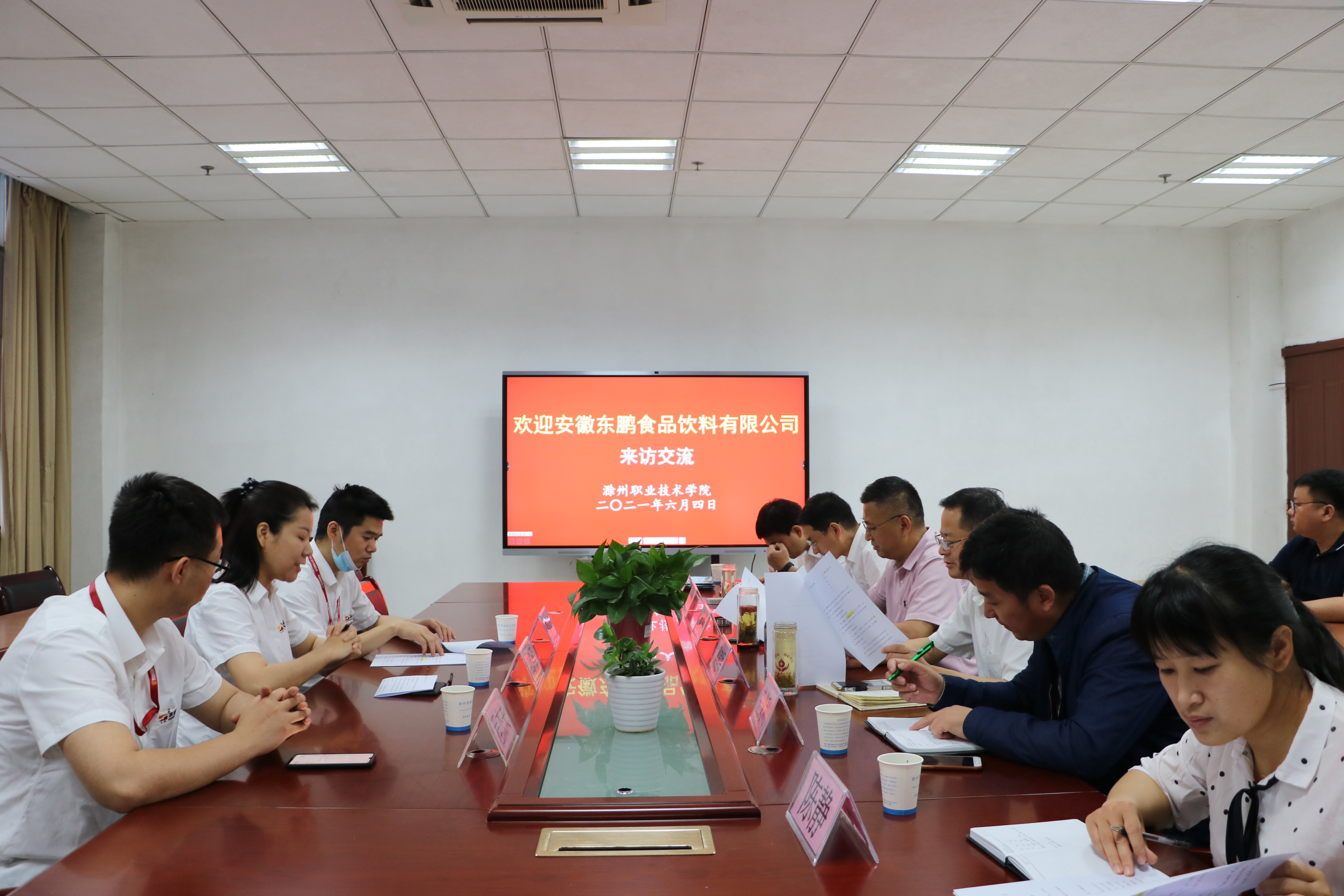 6月4日上午,安徽东鹏食品饮料有限公司李晓磊经理一行来校洽谈校企合作事宜。校党委委员、校长助理、招生就业处处长穆松,食品与环境工程学院院长梁建军出席座谈会。食品相关专业负责人和招生就业处有关负责同志参加了座谈。