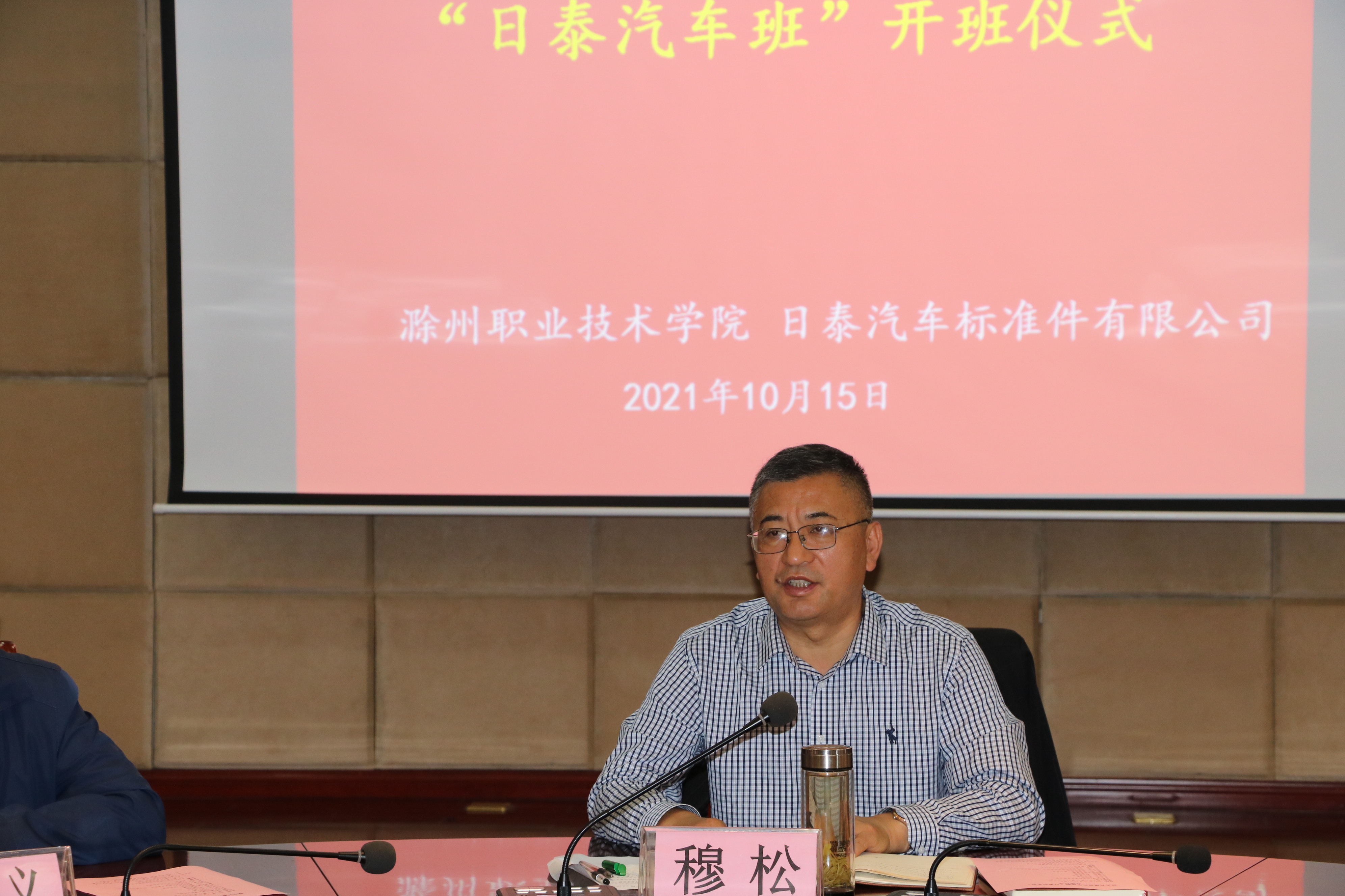 10月15日上午,Beat365在综合楼11楼会议室举办校企共建现代学徒制“日泰汽车班”开班仪式。校党委委员、校长助理、招生就业处处长穆松,日泰(上海)汽车标准件有限公司总经理章志暹出席会议,教务处处长张延义,机械与汽车工程学院院长张信群以及相关部门负责人和“日泰汽车班”所有学员参加了会议。会议由招生就业处副处长周多道主持。