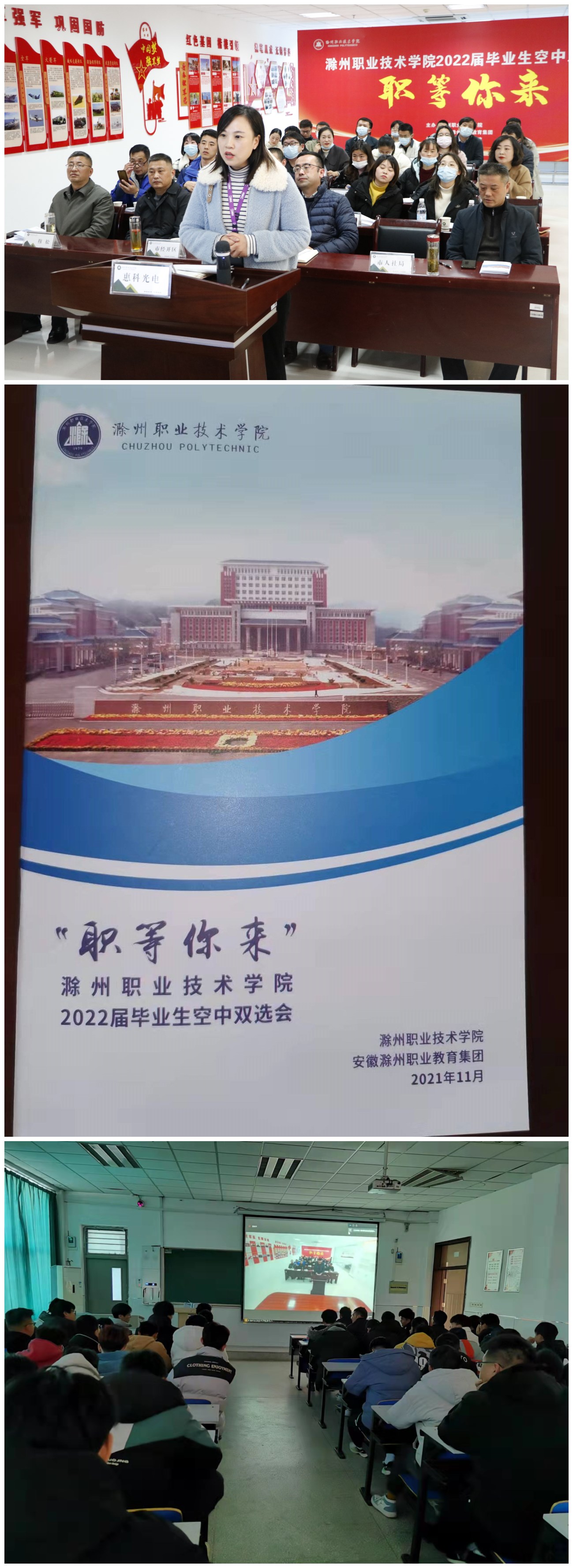 12月1日,“筑梦起航、职等你来”——Beat365唯一官方网站2022届毕业生空中双选会在综合楼1楼就业大厅圆满开幕。本次招聘会以腾讯会议宣讲、抖音互动、智联招聘网投递简历等形式相结合,参加会议的有滁州惠科光电科技有限公司、长电科技(滁州)有限公司、东方日升(安徽)新能源有限公司、安徽康佳电子有限公司、安徽滁州养元饮品有限公司等100余家企业,共提供5000多个实习和就业工作岗位,涉及滁州装备制造、智能家电、绿色食品、新型化工、硅基材料、新能源等六大支柱产业,为同学们提供了多方面、多领域的职业选择。