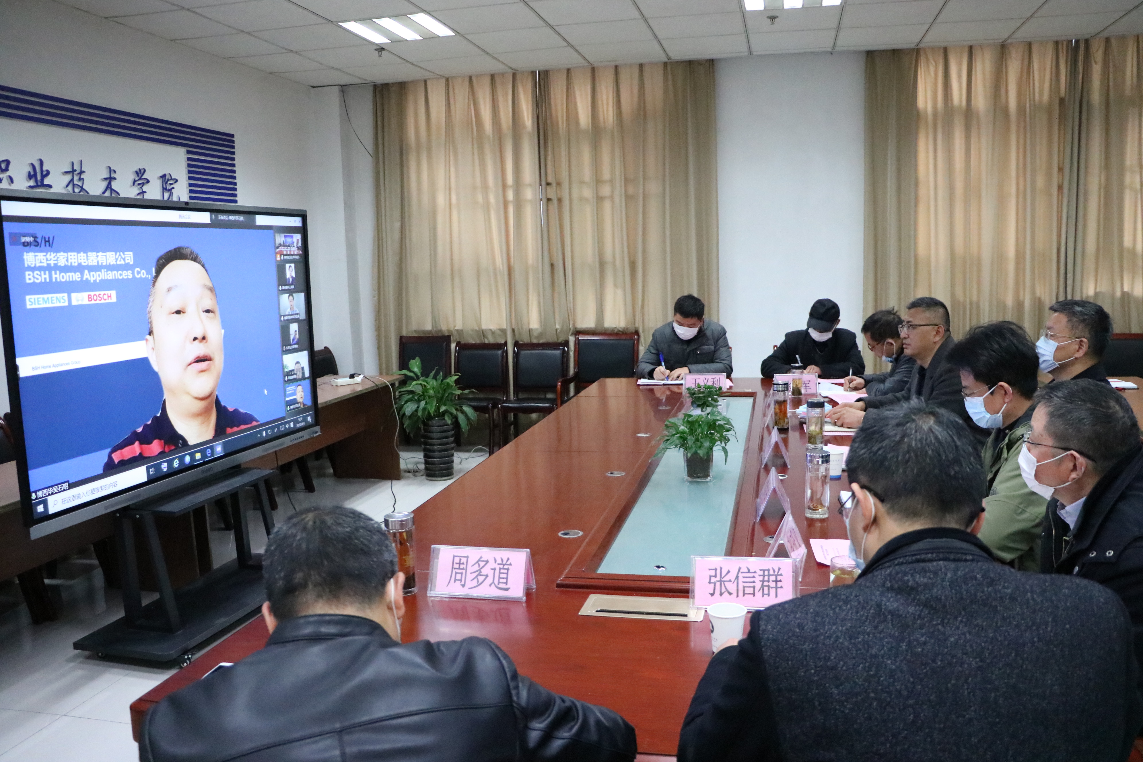 会上,曹付忠对参会企业一直以来对学校的支持与配合表示衷心的感谢。曹付忠强调,作为市属高职院校,Beat365要找准定位,切实服务地方经济社会发展,围绕重点产业发展,调整专业设置,与企业拓展合作领域、扩大合作规模、深化校企合作。希望企业更加重视人才队伍的培养和建设,参与到学校的人才培养计划中来,全程参与,让学生在校企双方的共同培养下尽快成长。曹付忠指出,在当前新型冠状病毒肺炎防控严峻形势下,双方一定要在抓好各项工作的同时,做好疫情防控工作,把工作做细、做严,持之以恒,确保学生的健康安全。