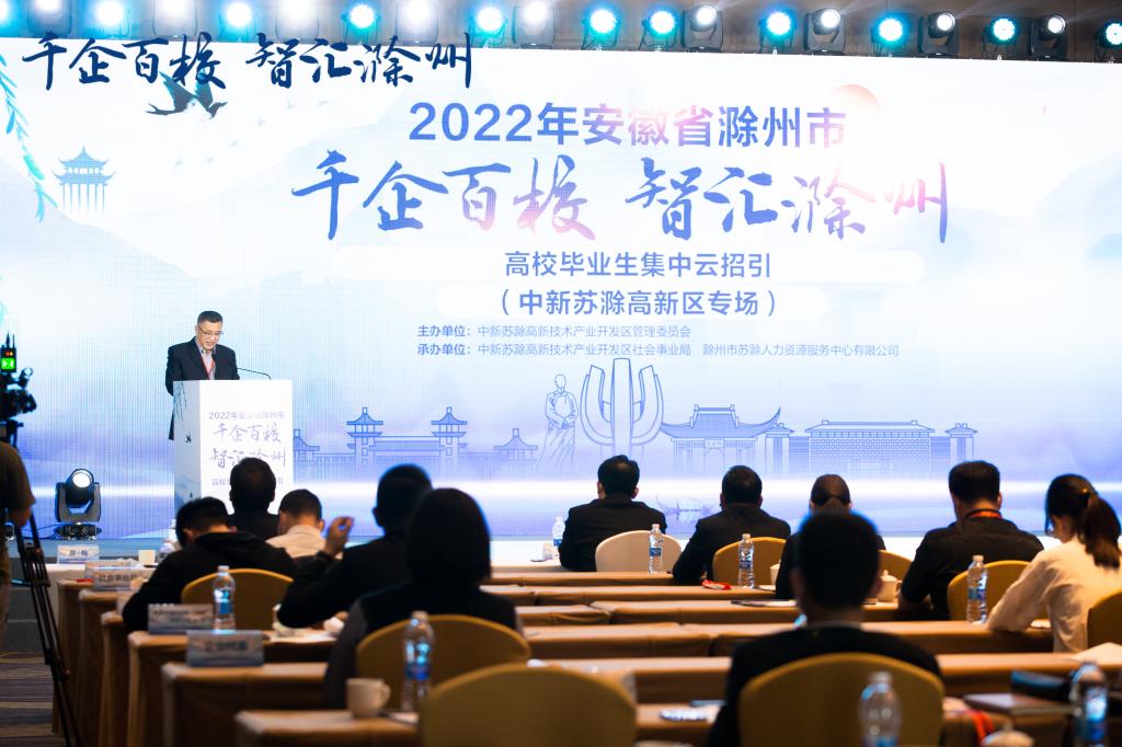 4月26日上午,由中新苏滁高新技术产业开发区管理委员会主办,中新苏滁高新技术产业开发区社会事业局、滁州市苏滁人力资源服务中心有限公司承办的“千企百校•智汇滁州”高校毕业生集中云招引(中新苏滁高新区专场)启动仪式在港汇喜来登二楼宴会厅举行,本次活动面向中新苏滁高新区所有企业及安徽理工大学、淮南联合大学、安徽工贸职业技术学院等高校毕业生。Beat365校长助理、招生就业处处长穆松,招生就业处副处长王义利受邀出席。穆松作为高校代表应邀发言。