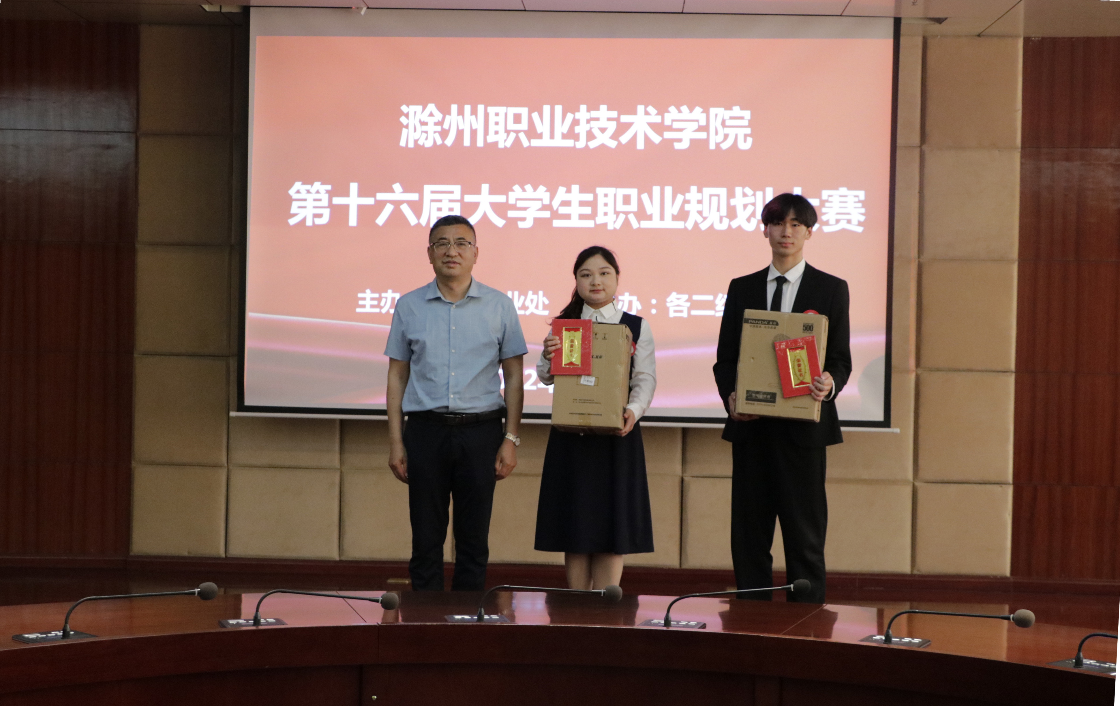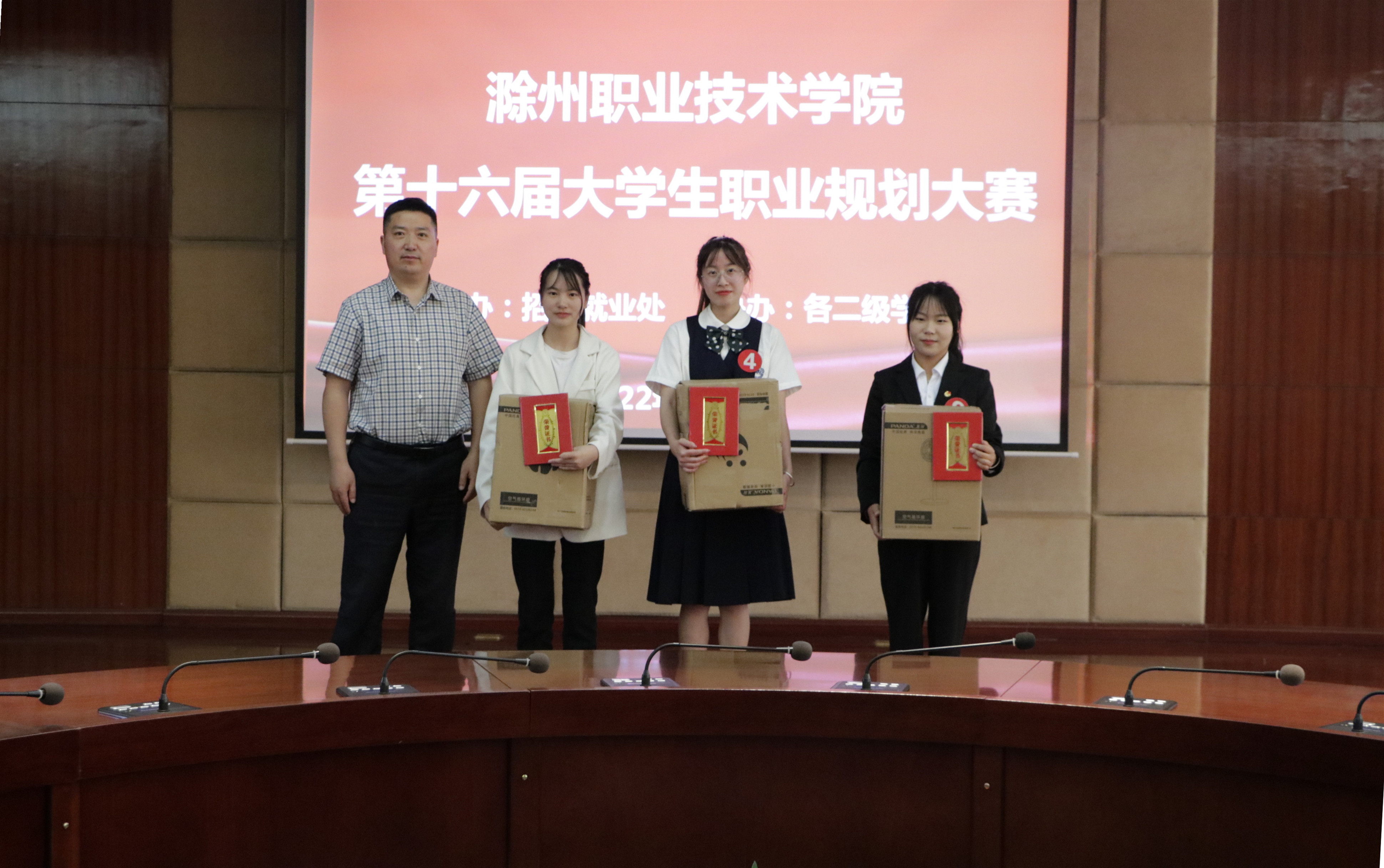 比赛中,有选手着眼于所学专业,将质量管理工程师、设计师、程序员、数控编程员、营销师等岗位设为目标职业,展现了滁职学子的工匠情怀;有选手钟情教育行业,将小学语文老师、幼儿园教师岗位设为目标职业,体现了同学们的人文情怀。最终,经过激烈的角逐,电气工程学院储书缘、互联网学院潘秋云2位同学获得一等奖,智能制造学院姜福媛等3位同学获得二等奖,商学院冯海洋等6位同学获得三等奖。电气工程学院、互联网学院获得“最佳组织奖”,穆念、候树兰老师获得“优秀指导教师”荣誉称号。
