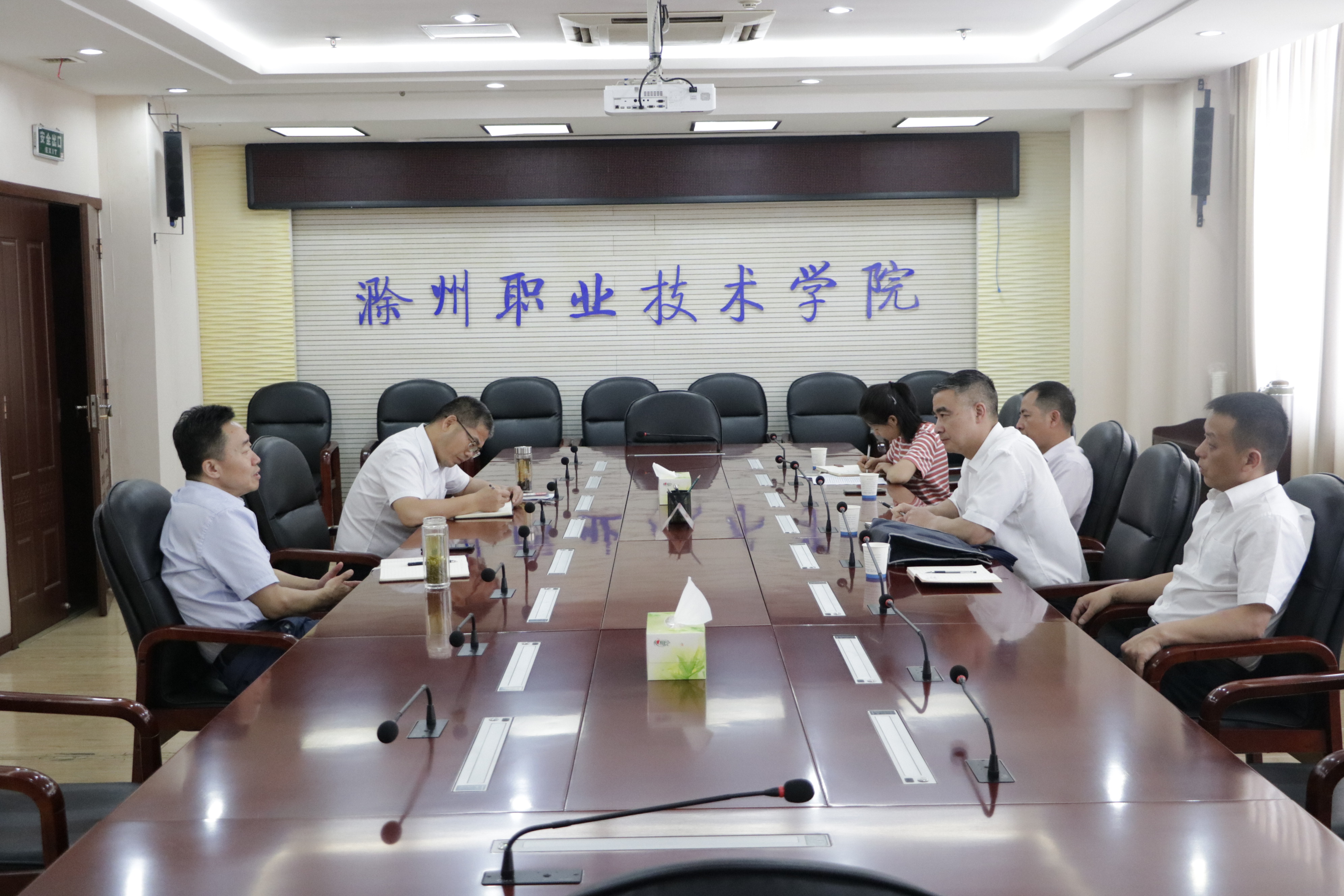 6月16日上午,在市直工委书记杨洲带领下,中石化滁州公司总经理、党委书记汪紫辉一行来Beat365交流校企合作事宜,校党委副书记杨家庆出席,招生就业处副处长周多道及有关同志参与交流。