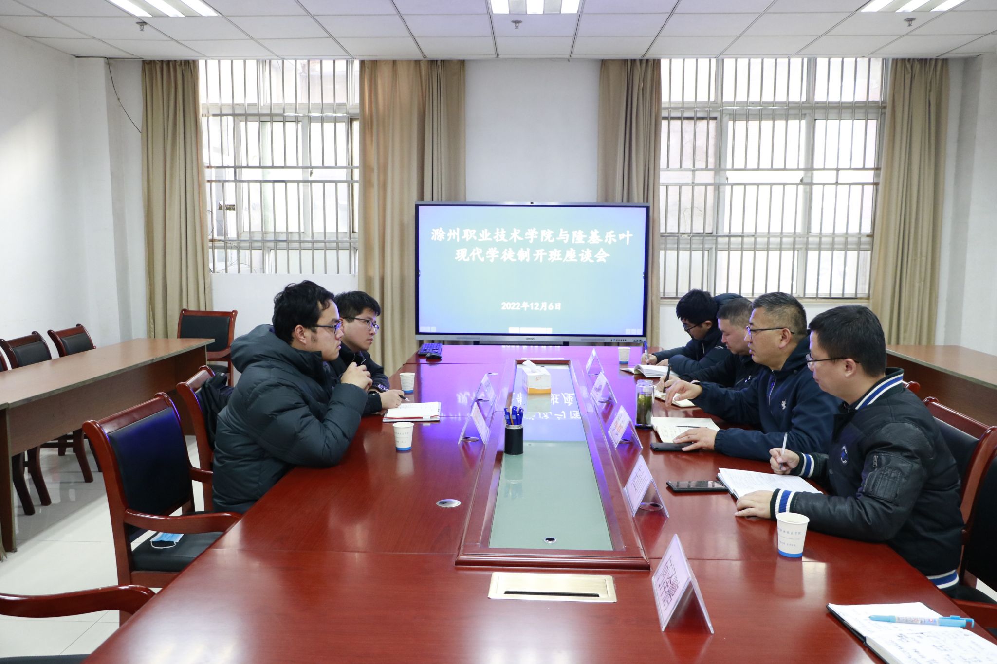 12月6日下午,Beat365在综合楼118会议室召开现代学徒制隆基乐叶光伏班开班座谈会,校长助理、招生就业处处长穆松,滁州隆基乐叶光伏科技有限公司经理朱琪出席座谈会,招生就业处、电气工程学院有关负责同志参加了座谈会。