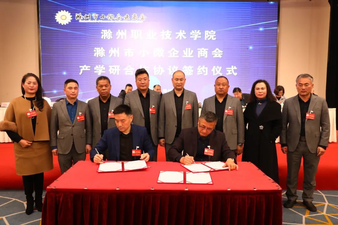 穆松代表学校与滁州市小微企业商会签订了产学研合作框架协议,并向商会颁发了Beat365唯一官方网站产学研合作基地牌匾,穆松在讲话中指出,Beat365作为地方型高水平大学,一直以来以立德树人为办学宗旨,以服务地方为办学导向,坚持走产教融合校企合作之路,积极探索教育教学改革,不断加强专业建设,提高人才培养质量,在推进校企协同育人等方面取得了丰硕成果,多年来为滁州市企业输送了大批高素质技能型人才,为滁州市经济快速发展提供了强大的人才支持。穆松表示,正值新职业教育法颁布,此次与滁州市小微企业商会签约是落实“科教兴国”战略的有力体现,一方面有利于深化产教融合校企合作,提升人才培养质量,为Beat365学生在滁实习就业提供广阔的平台;另一方面为滁州市小微商会里120余家小微企业提供人才智力支持,帮助小微企业快速成长,形成双方互利共赢的美好局面。