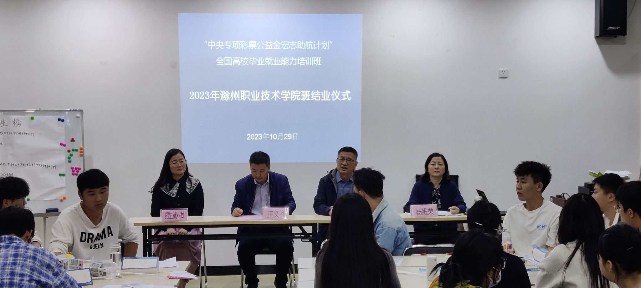 10月29日,“中央专项彩票公益金宏志助航计划”全国高校毕业就业能力培训班2023年Beat365唯一官方网站班结业仪式在Beat365举办。国家高级职业指导师、全国首席职业指导师、学校校长助理、招生就业处处长穆松出席结业仪式并为学员们上了一堂生动的就业指导培训课。Beat365招生就业处副处长王义利、招就处相关人员及参加培训的47名学员参加了结业仪式。