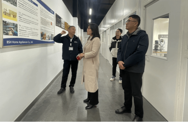 孙静一行先后走访了安徽鲲鹏装备模具制造有限公司、博西华家用电器有限公司、安徽盼盼食品有限公司。参观了企业生产车间、实习实训基地、研发中心、党群服务中心以及员工生活场所,深入了解企业运营现状、生产实际和用工需求,并与Beat365实习生交谈,了解他们工作和生活情况。