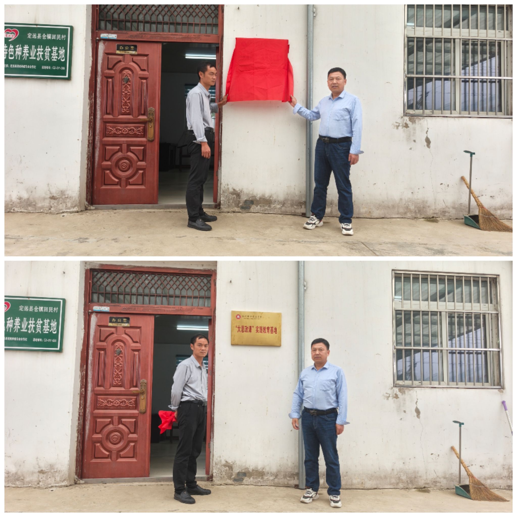 宣讲前,孔金和定远县清爽葡萄合作社负责人胡立虎共同为“大思政课”实践教学基地揭牌,就乡村振兴开展合作。