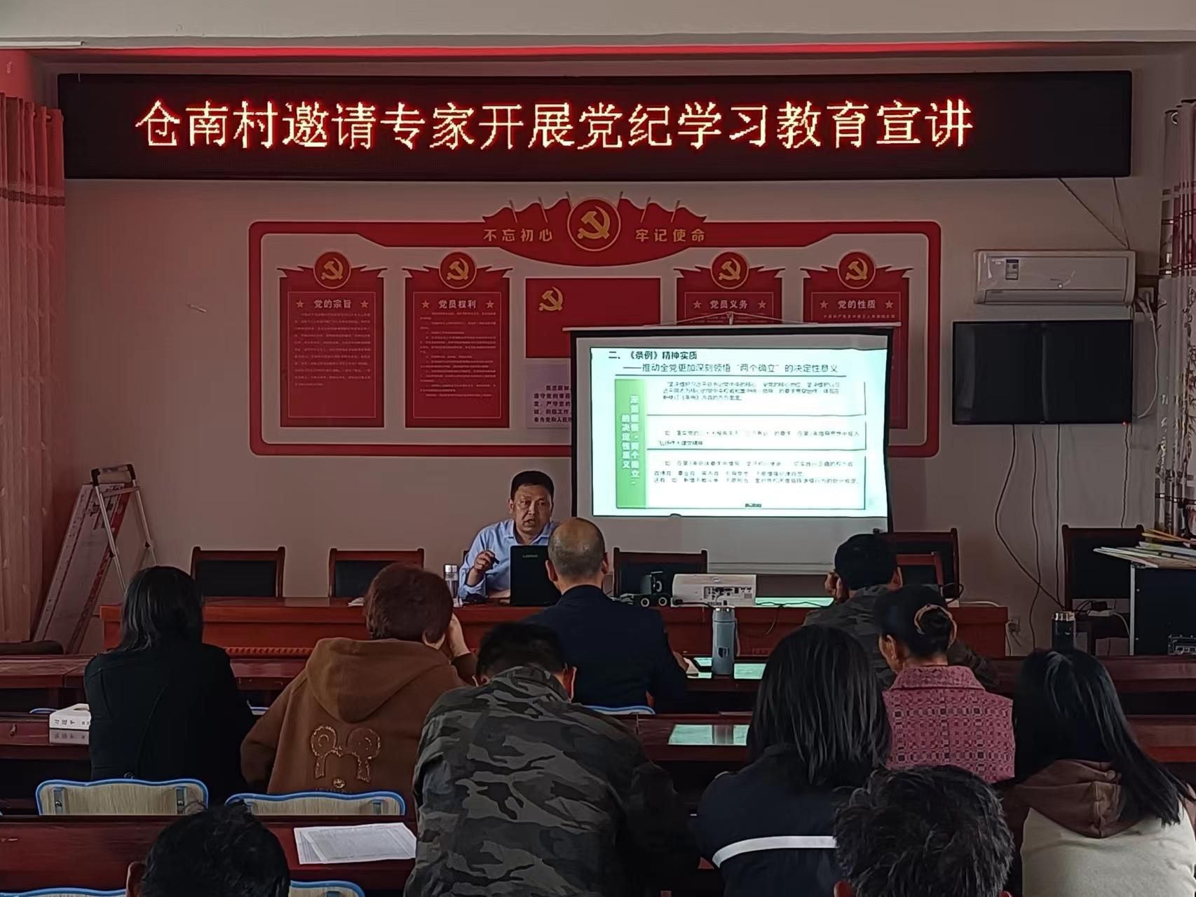 戴月总结时强调,在座的同志是农村发展的中坚力量,理应带头学纪、知纪、明纪、守纪,把学习贯彻新修订的《条例》作为重要政治任务,牢固树立党章意识、纪律意识和规矩意识,更加深刻领悟“两个确立”的决定性意义,更加自觉增强“四个意识”、坚定“四个自信”、做到“两个维护”,坚守纪律底线,巩固拓展脱贫攻坚成果,赋能乡村振兴,提高仓南村党员干部对党的二十大和二十届二中全会精神的理解,围绕“六亮”行动进一步加强基层党组织建设,为在新时代新征程上赢得更加伟大的胜利作出更大贡献。