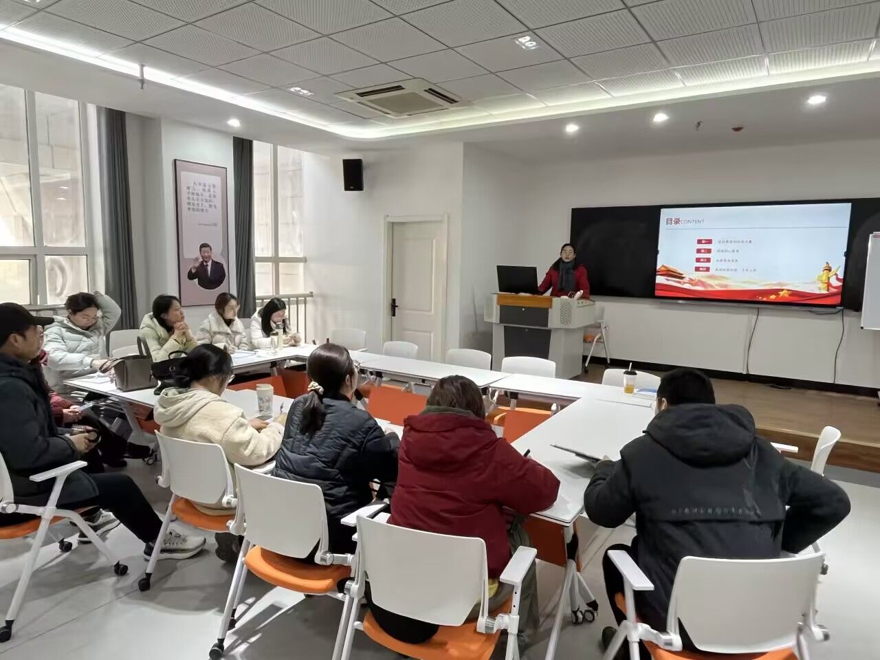 胡颖颖强调,要立足学校实际,从红色文化中汲取真理力量与信仰之源,将“四个全面”战略布局融入育人实践,深挖红色资源内涵,以爱国情怀贯穿教育教学全过程,通过思政课程与课程思政双轨并进,打造“红色基因+学科特色”融合教学模式。全体党员教师应讲活党的历史故事,用革命精神激发学生奋斗意志,推动红色文化从“课堂输入”向“行动输出”转化。