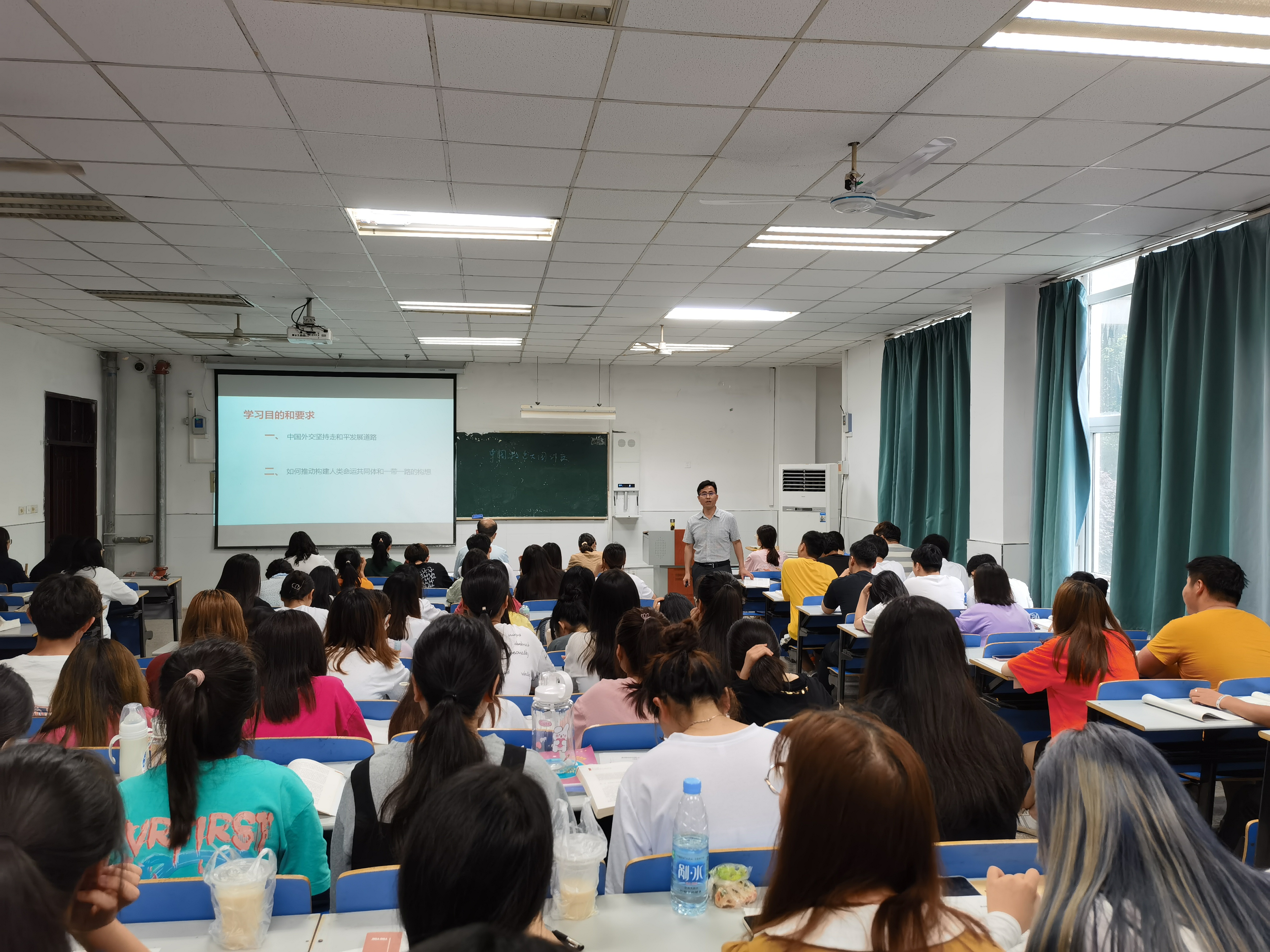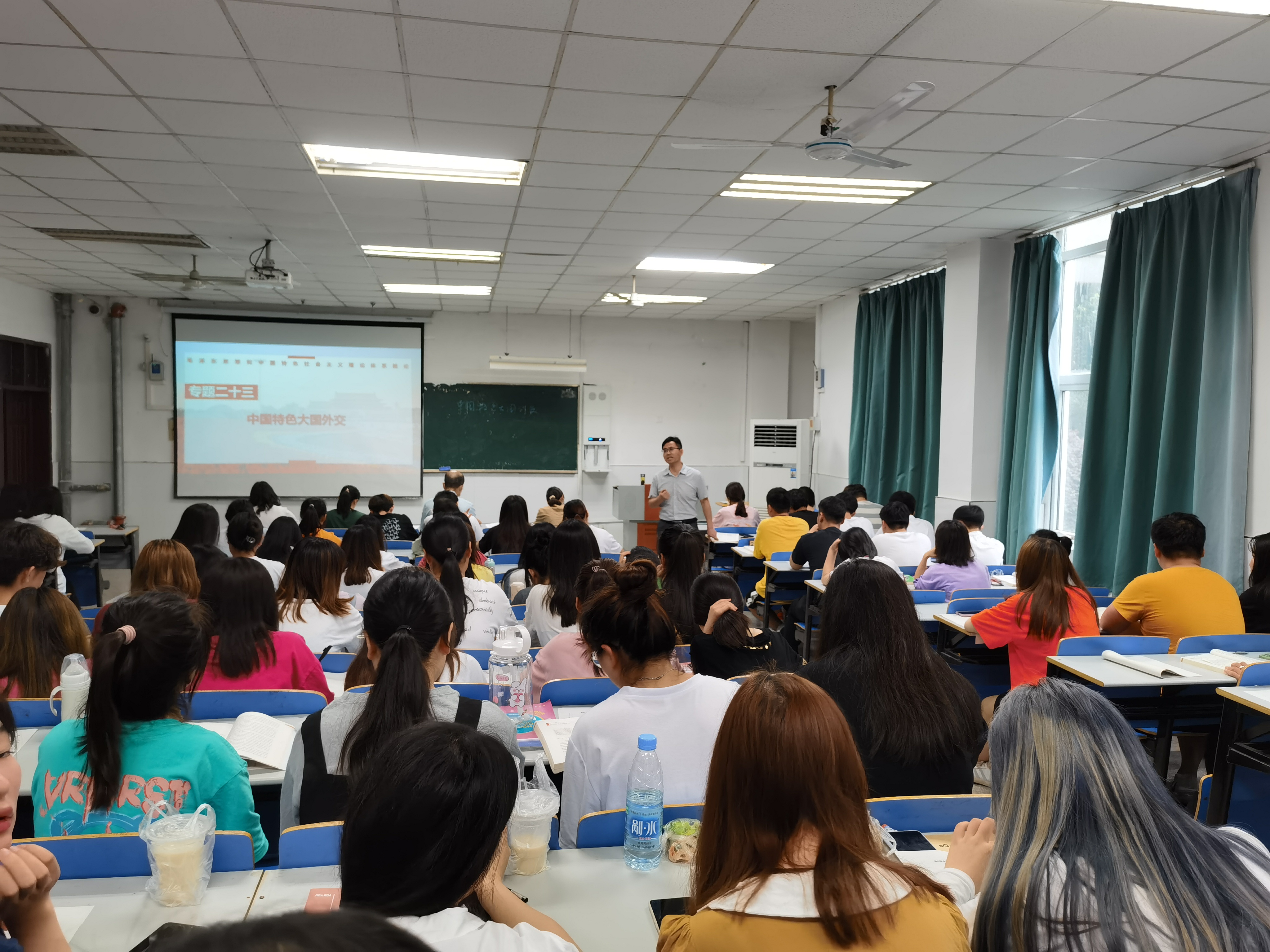 6月18日,马克思主义学院在至真楼1101教室在“毛泽东思想和中国特色社会理论体系概论”课堂展示了一节党史思政示范课。本次示范课由马克思主义学院汪立超老师主讲,题目是“中国特色大国外交”。教务处派出张亚芳副教授、质量管理中心派出李进梅副教授两位专家亲临指导,部分思政课教师观摩了示范课。