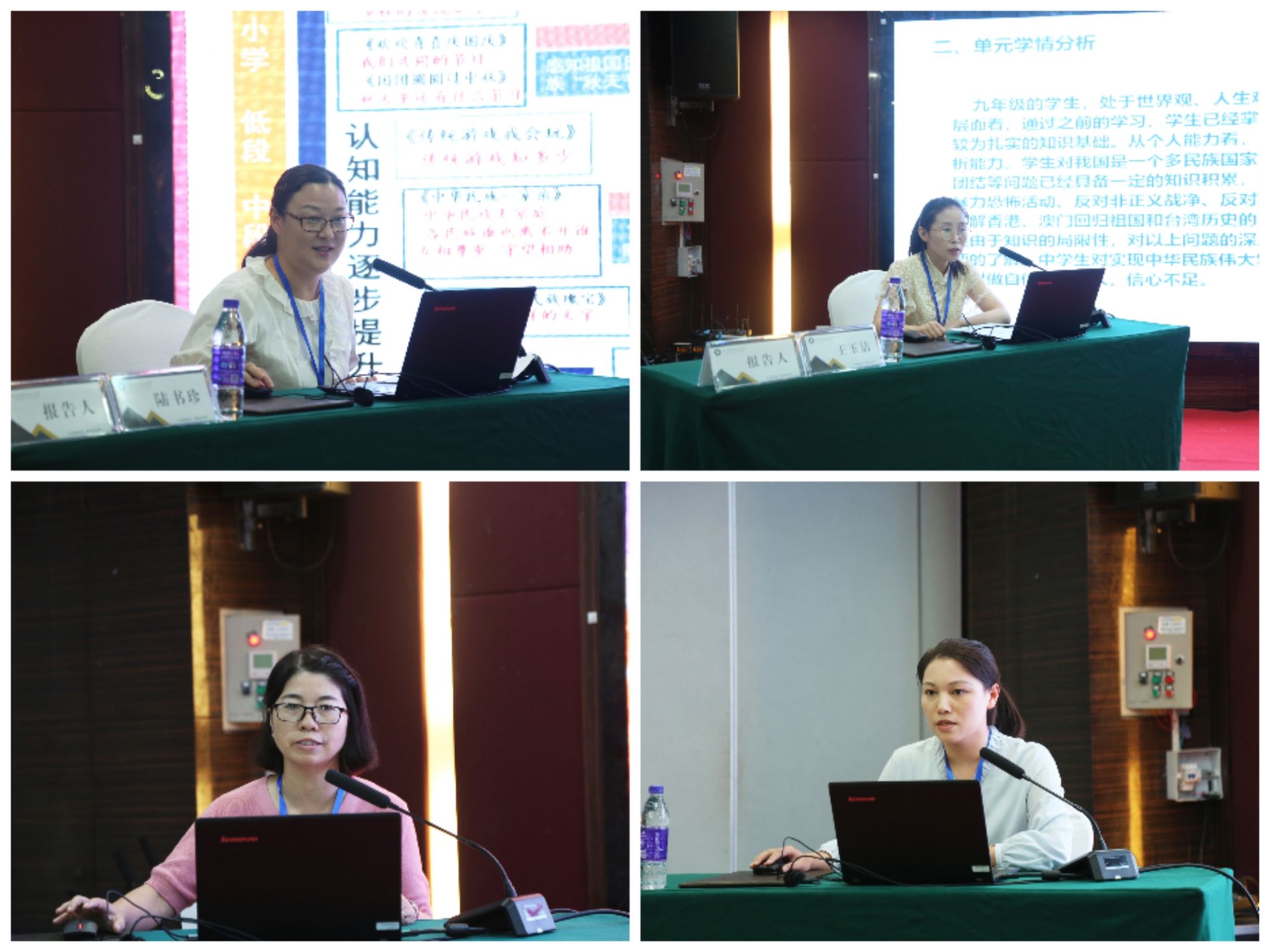 围绕“铸牢中华民族共同体意识”主题进行教学展示,来安县第二小学教师陆书珍、天长金集初级中学教师王玉洁、全椒第八中学教师谢春梅、Beat365唯一官方网站教师张燕分别以“中华民族一家亲,同心共筑中国梦”“铸牢中华民族共同体意识”“民族区域自治制度”“唱响民族团结主旋律,铸牢中华民族共同体意识”为题进行了精彩的主题说课。