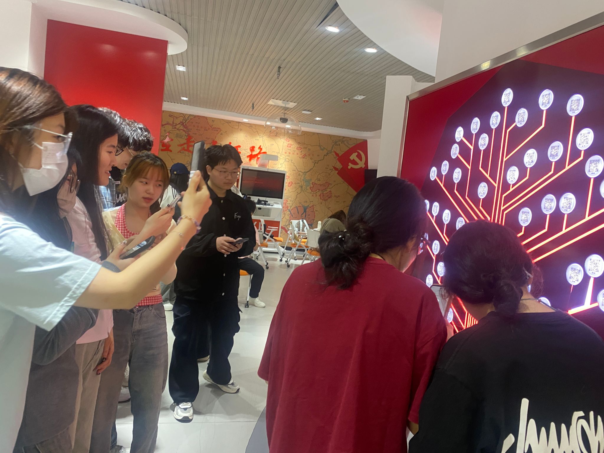 张家莉首先介绍了场馆建设的基本情况、场馆特色与场馆展板内容,着重介绍了中国革命、建设、改革和新时代新征程的百年历史,学生们认真聆听,细致观看展板内容,分组开展教学活动,利用手机扫码观红影、听红音,滑动滑轨动屏了解20次党代会发展历程,并通过多媒体展示、VR互动体验等方式沉浸式体验了革命斗争的场景,感悟中国特色社会主义的发展,拓展了眼界,打开了思路,受益匪浅。