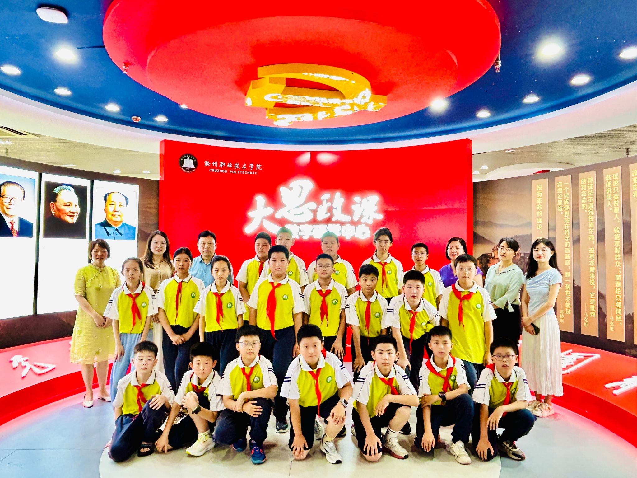 为推动思政教育资源共享,创新思政教育模式,6月18日, 滁州市第五小学(滁州学院附属小学)30 名师生走进我院“大思政课”数字研学中心,开启了一场充满科技感与教育意义的思政研学之旅。马克思主义学院党总支书记、院长孔金及部分思政教师热情接待。