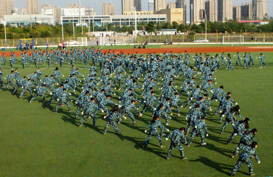 伴随着主持人的声音,100名汽车系大一新生组成的广播体操方阵来到了运动场,他们与其他各系进行了广播体操比赛,他们身着统一服装,动作整齐划一,一眼望去,彰显青春气息。他们可蹲可站,可近看也可远观,不一样的角度给你不一样的精彩。接下来是由我系78名学生参加的400余人大型表演方阵,集体表演靠的是全体同学的努力,是携手共进的结果,他们不惧风雨,不怕困难