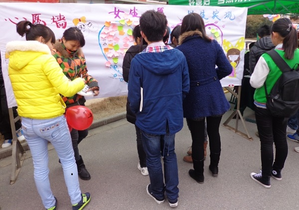 这次活动,全校女生可以在卡片上写下自己的愿望和联系方式张贴在心愿墙上等待愿意帮助实现愿望的男生来摘取。这项活动虽然传统,但是仍吸引很多同学前来参与,女生们纷纷在心愿卡上写下自己的愿望,如“希望得到一盒巧克力”、“陪看电影”、“帮忙图书馆占座”等等。活动现场充满着女生们幸福快乐的笑容。