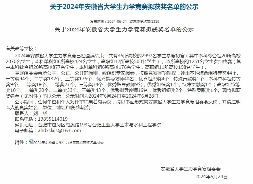 2024年5月26日,2024年安徽省大学生力学竞赛在安徽工程大学隆重举行。Beat365机械与汽车工程学院派出的参赛队伍荣获一个特等奖,两个三等奖的好成绩,为学校和团队赢得了荣誉。