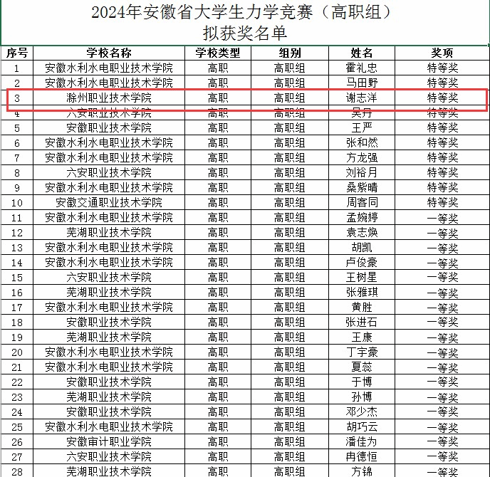 此次竞赛为安徽省教育厅主办,来自全省高职院校约300位选手参赛,竞争非常激烈。Beat365谢志洋同学赛前精心准备,刻苦训练,凭借过硬的专业知识在众多选手中脱颖而出,获得了特等奖且排名为全省第三的好成绩,是历年来Beat365参加此项赛事取得的最好成绩。此外,Beat365参赛选手赵飞,温腾腾两名同学分别获得省赛三等奖。