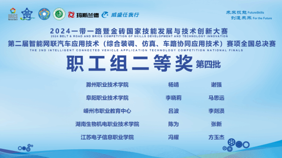 10月30日至11月2日,2024一带一路暨金砖国家技能发展与技术创新大赛第二届智能网联汽车应用技术(综合装调、仿真、车路协同应用技术)赛项全国总决赛在宣城顺利闭幕。我院四名教师在职工组同台竞技,其中杨靖、谢强两位老师获得了二等奖,姚芳、贾会星两位老师获得三等奖的好成绩。
