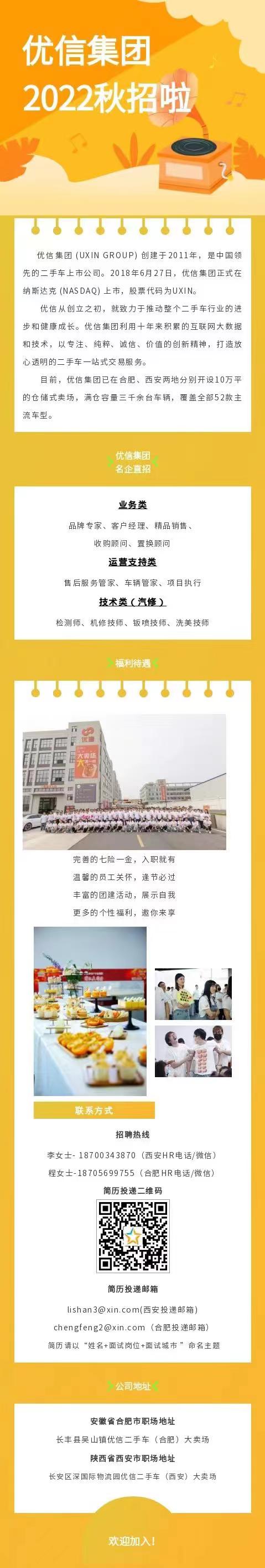 优信合肥长丰再制造工厂 2022校园秋季招聘简章
