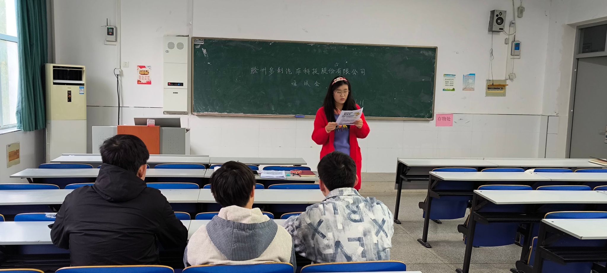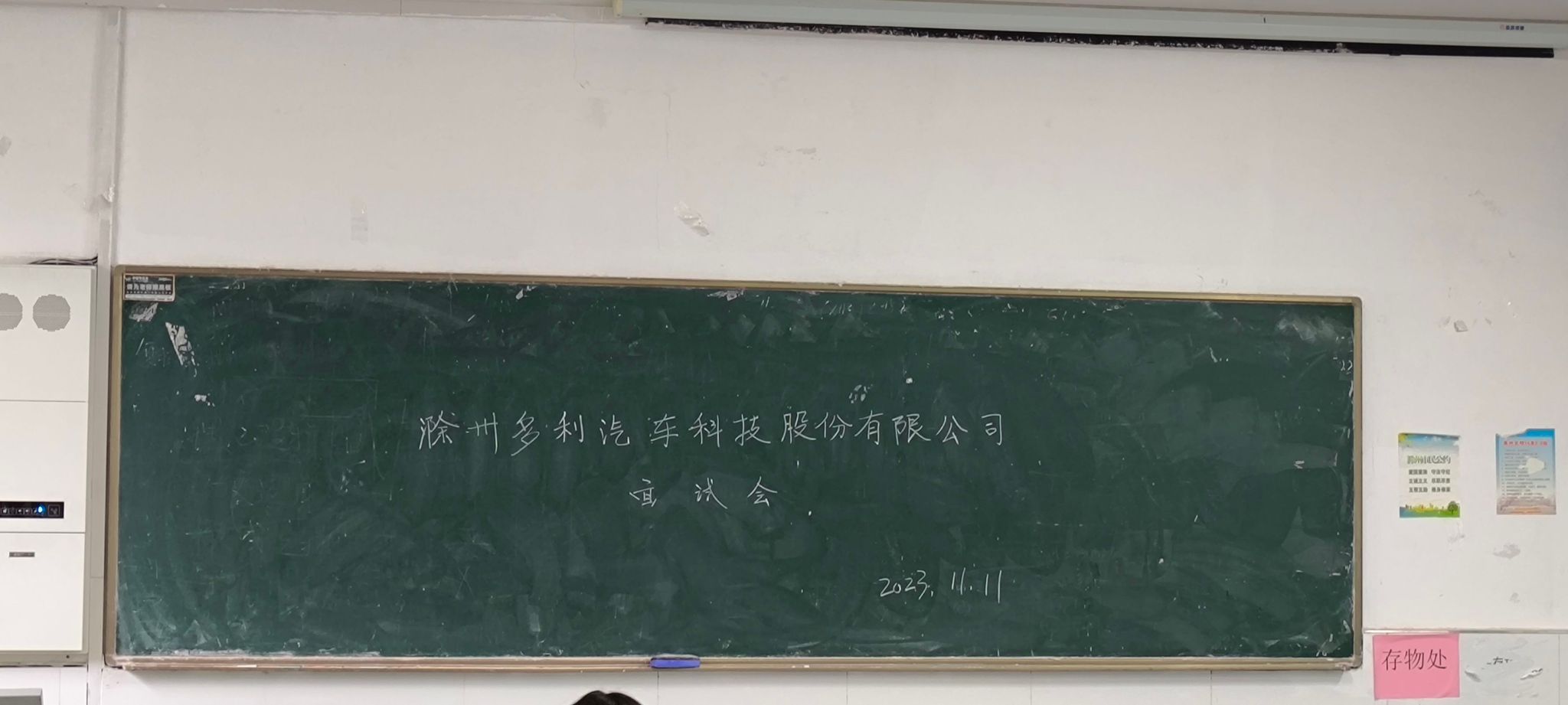 滁州多利汽车科技股份有限公司招聘专员介绍了公司生产与工作职业的基本情况,着重介绍薪资待遇、职业发展、工作环境等问题。在咨询环节同学们进一步了解公司情况与比较关心的发展前景、福利待遇等信息。同时邀请同学们前去公司实地参观了解。通过现场互相交流,学生与公司双方都有了更深层次的了解。