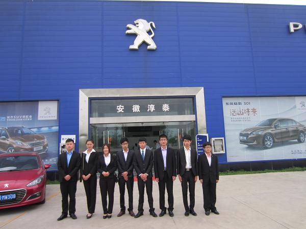 为了能够在真实的职场环境中提高实践技能,汽营专业的同学们对本次实习表现非常积极。清晨12级汽营(2)班的同学们就穿着正装来到校门口等候,有种迫不及待的感觉。在张信群教授,贾会星、张记老师的带领下。同学们分别被分配到福特、比亚迪、东风标致、长安、上海大众、雪铁龙等六家4S店实习。同学们进入各家4S店后,部门经理均给同学们召开了会议,介绍了相关事宜,其中包括店内礼仪、前台接待、售后服务等等,然后同学们根据部门要求分别进入岗位学习实践。
