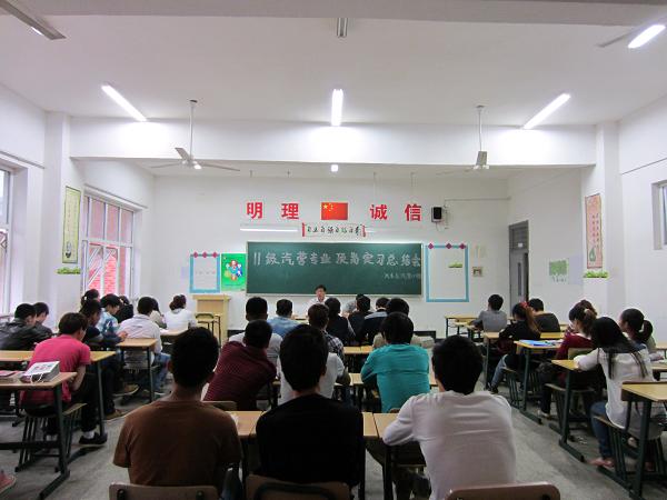 11汽营(1)班学生已经顺利完成了为其两周的校外4S店顶岗实习,本周开始11汽营(2)班学生又踏上了校外实习之旅。张信群教授就此次实习活动首先做了总结,随后鼓励每个同学与大家一起分享实习生活中所学到的东西。在全球鹰、比亚迪、东风标致、别克、一汽大众等4s店实习的学生结合自己的岗位、企业培训方式、收获的经验都做了详细的工作汇报。