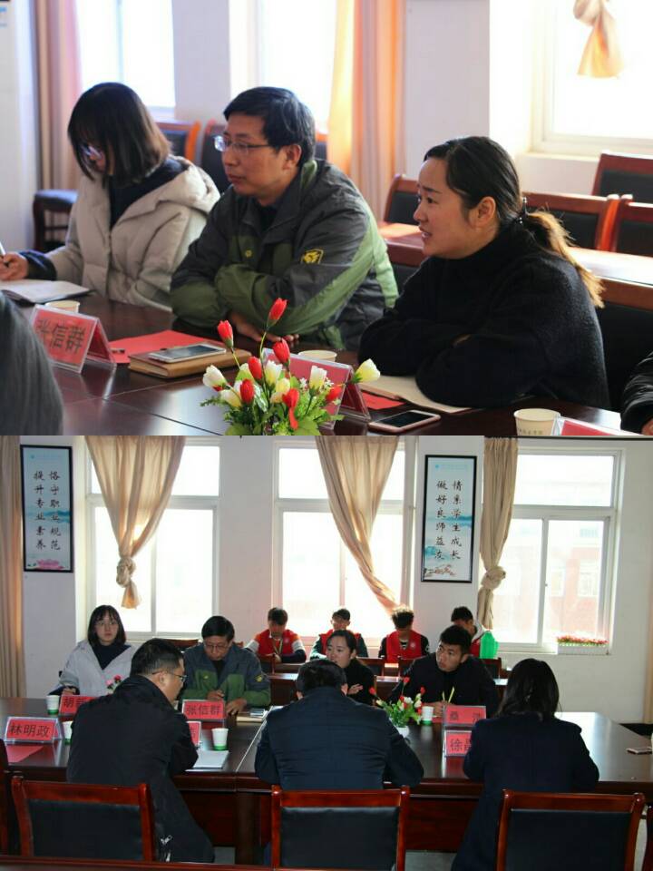 为了更好地推行河长制,吸纳青年志愿者加入水生态环境工程建设,滁州市琅琊区水利局主要负责人刘伟、团区委书记吴迪、副书记徐晶晶于2017年11月23日上午10:00莅临汽车工程系,就吸纳青年志愿者担任民间河长一事进行商议和讨论,参加此次会议的有汽车工程系主任张信群、团总支书记朱婷婷、团总支副书记胡新月、桑浩等。