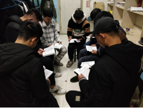 20181212日晚,滁州职业技求学院汽车工程系18汽检三班的同学们在宿舍开展了课外读书活动。
