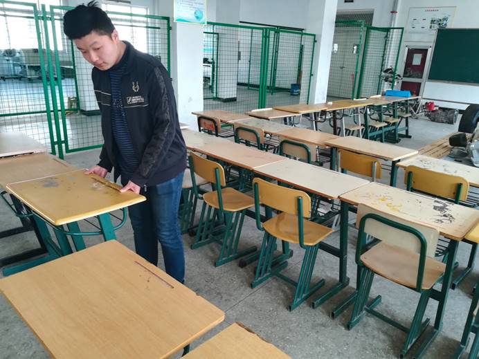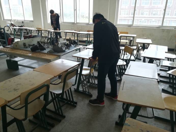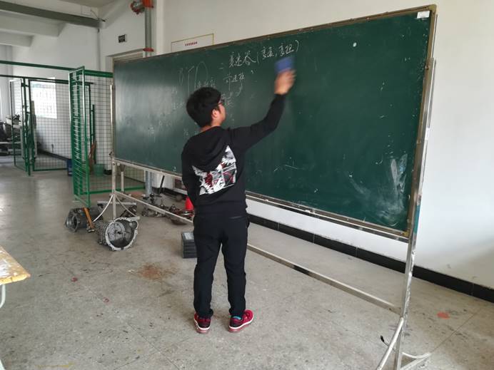 午休过后,汽车协会干事们便带上清洁工具,前往实训楼开始清扫活动。一到实训楼就看见错乱的桌椅和缝隙里的垃圾。对此协会的干事们积极的展开了清扫,整理。在协会干事们的辛勤劳动下,很快凌乱的实训基地就被打扫干净了。看着干净、整洁的基地,干事们都露出了灿烂的笑容。