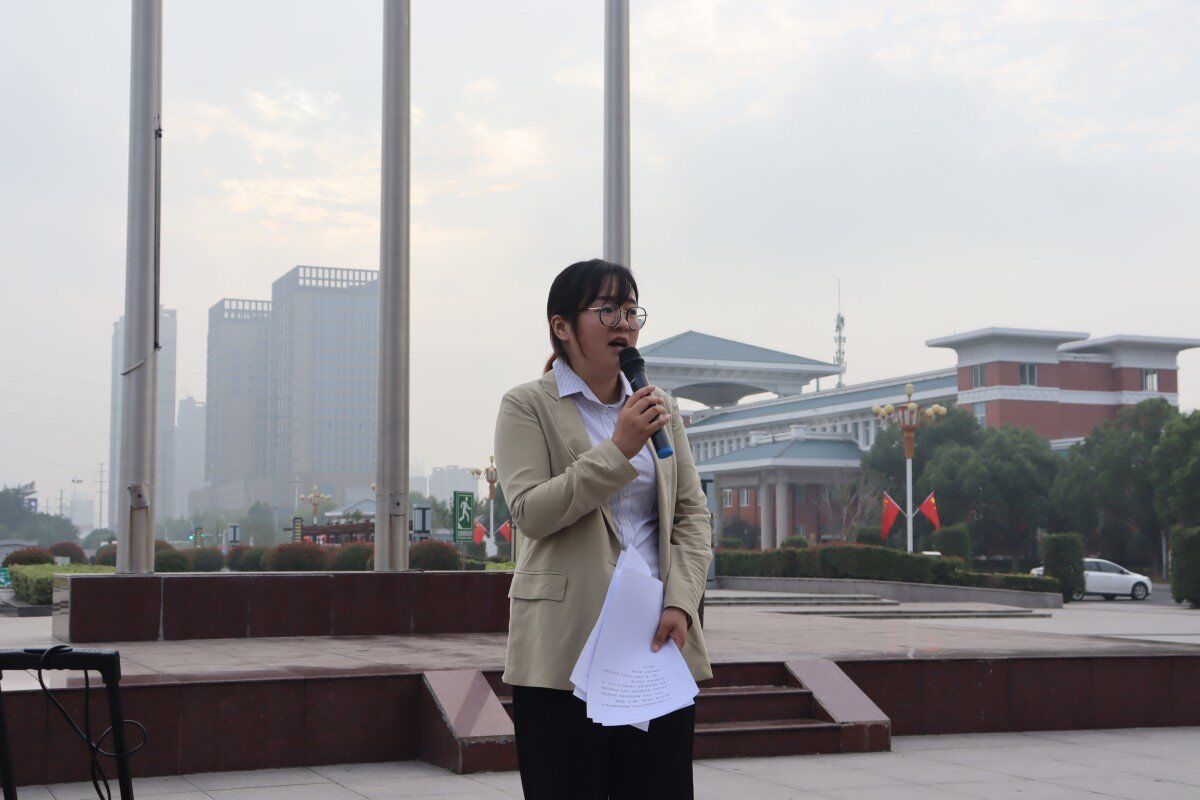 国旗护卫队踏着整齐有力的步伐向国旗台走去。在庄严的国歌声中,国旗缓缓升起,全体师生庄严肃立并齐唱国歌。学生代表赵伊蕊在国旗下进行演讲,随后党总支书记朱婷婷发言致辞,强调了同学们在新的起点,应当努力学习、拼搏奋斗,体悟祖国成长之艰辛历程,勇担时代使命,争做有为青年,以实际行动践行“请党放心,强国有我”的青春誓言。