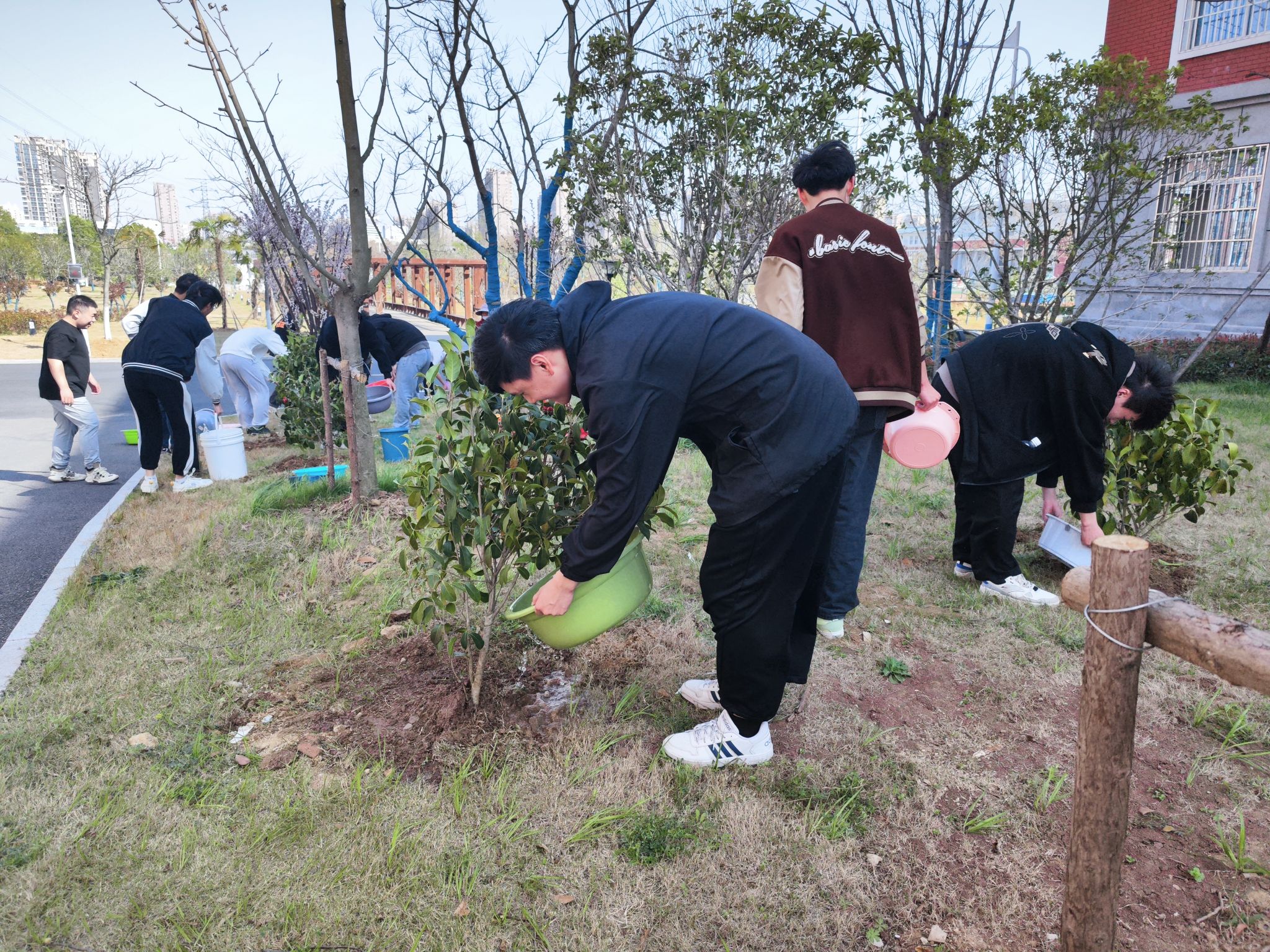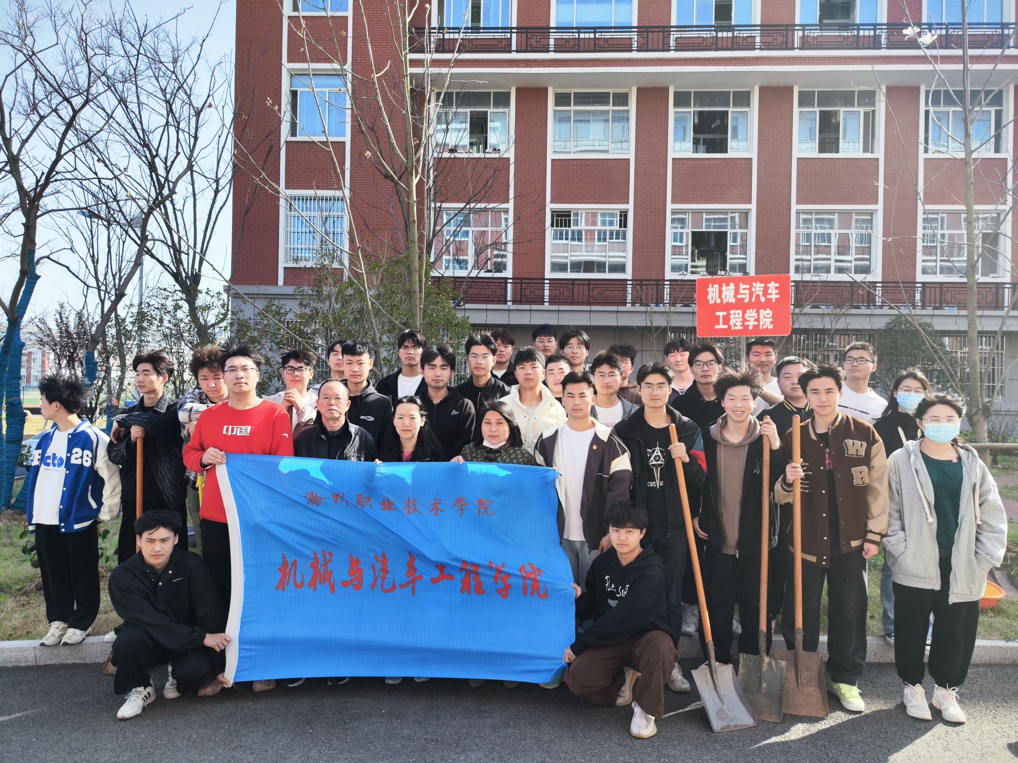 又到了春回大地,芳草吐绿的好时节,为了传承雷锋精神,响应国家绿色环保理念,机械与汽车工程学院于2023年3月14日下午在12号宿舍楼东侧、儿童医院北侧开展校园“植”此青绿,“树”满滁职植树活动,学生党支部的党员同志和22级新能源2班全体同学参加。