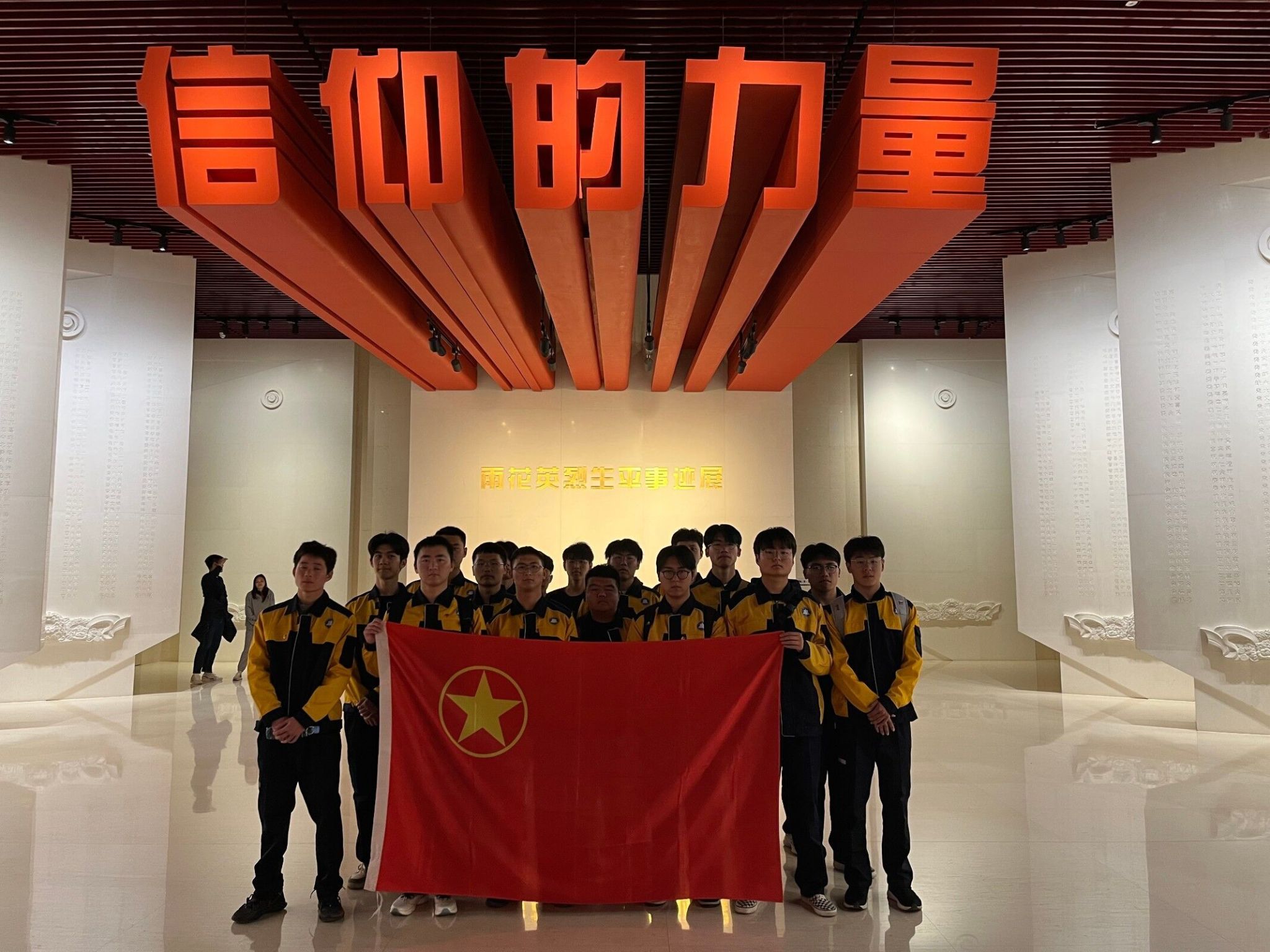 跟随指示牌,同学们来到了雨花台烈士馆。宏伟的纪念馆古朴典雅而又简洁庄重、门庭南北两面均雕有“日月同辉”花岗石浮雕,象征着烈士精神与山河共存,与日月同辉。馆内人来人往,但有序安静,那些压低的交流声,沉默的、长久的伫立,庄敬的面容深深感染着每一位同学。同学们在汉白玉上横平竖直的“信仰的力量”五个大字背后的1519名烈士前伫立,心中充满着震撼与钦敬。随后,同学们一一观看了烈士雕塑及遗物,感悟烈士们为了崇高理想不惧流血牺牲的伟大精神。