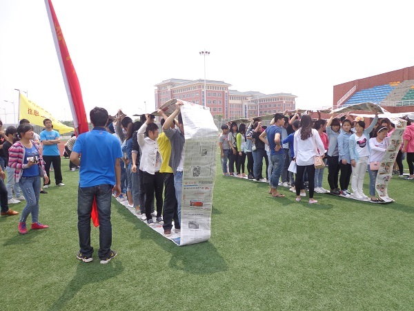 比赛开始前,各系参赛队伍就在场边紧张练习,口号震天。首先是素质拓展“车轮滚滚”赛,各系队员站在报纸围成的车轮圈内向前推进,汽车系的同学们喊着高昂的口号,迈着整齐的步伐,团结一心,齐心协力一起向前推进,现场的竞争异常激烈,场边一阵欢呼声,最终汽车系获得了优异成绩。接下来同食品与环境系在“生死电网”比赛中,汽车系同学团结协作,小心翼翼的穿过了障碍网,最后取得了胜利。