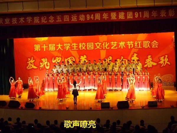红歌唱响滁职精神,国旗飞扬百年辉煌。为了弘扬五四精神,增强同学们的爱国热情,5月4日下午,由共青团滁职委员会主办的以“放飞中国梦,唱响青春歌”为主题的第十届校园文化节红歌会在学院礼堂隆重上演。