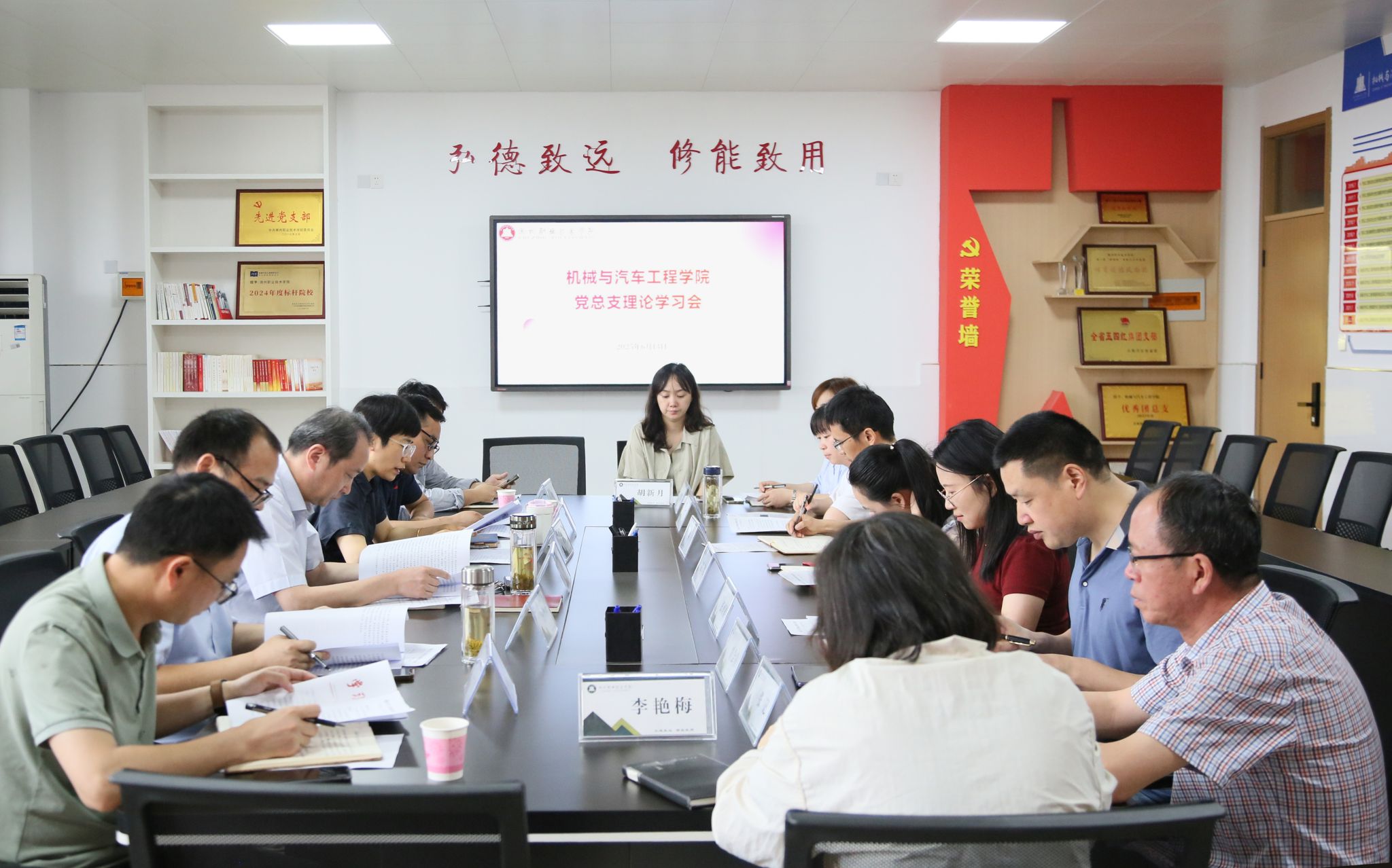 6月13日,校党委副书记、校长许雪峰深入机械与汽车工程学院指导党总支理论学习并开展工作调研。会议由机械与汽车工程学院副书记吴佳佳主持,校办公室、宣传统战部等负责同志陪同,机械与汽车工程学院党政班子成员、党支部书记、系主任、全体专职辅导员参加会议。