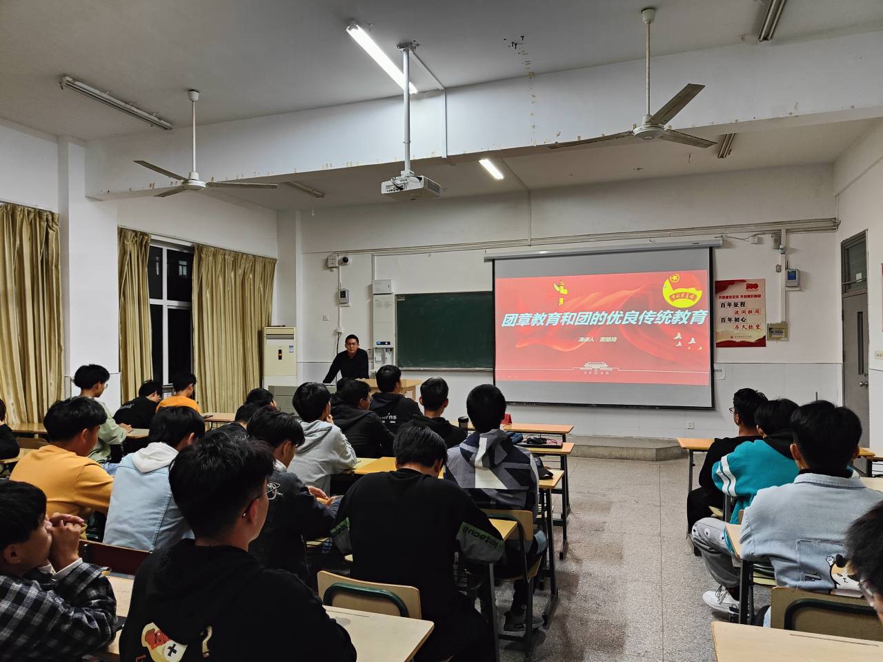 恰逢建党百年之时,为增加党的人才储备、培育共青团新生力量,深化入团积极分子团史学习教育和理想信念教育,2021年11月4日晚上,Beat365唯一官方网站机械与汽车工程学院在5212教室开展了“团章教育和团的优良传统教育”主题团课培训活动。本次活动由团总支组织部贾皓琦主持,机械与汽车工程学院入团积极分子全部参加。
