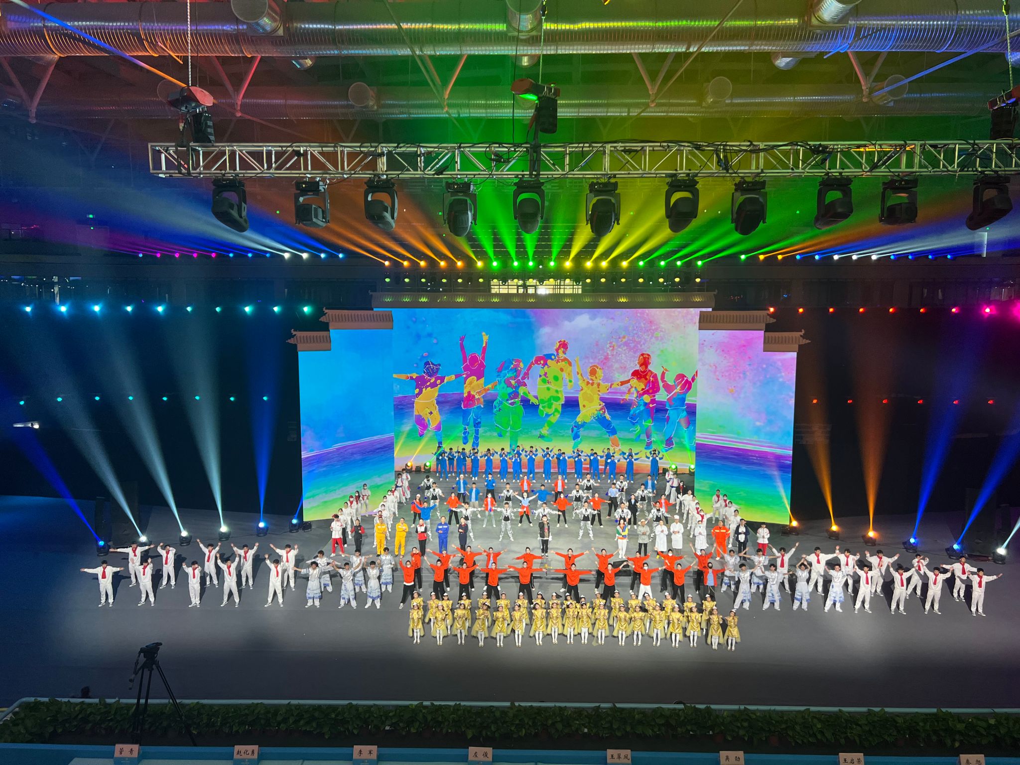 10月5日起,我院114名同学义无反顾投身到省十五运群演工作中,在昼夜温差较大、训练强度较高的情况下,依然坚守在自己的位置上,以积极向上的姿态面对排练中遇到的一切困难,用一个多月的时间在十五运开闭幕式的演出中向观众呈现出一场视觉盛宴。我院114名学生承担了部分节目表演任务,参与了《超越•向未来》、《逐梦之光》、《真心英雄》、《凤阳花鼓》、《舞动精彩》以及《我们都是追梦人》节目。