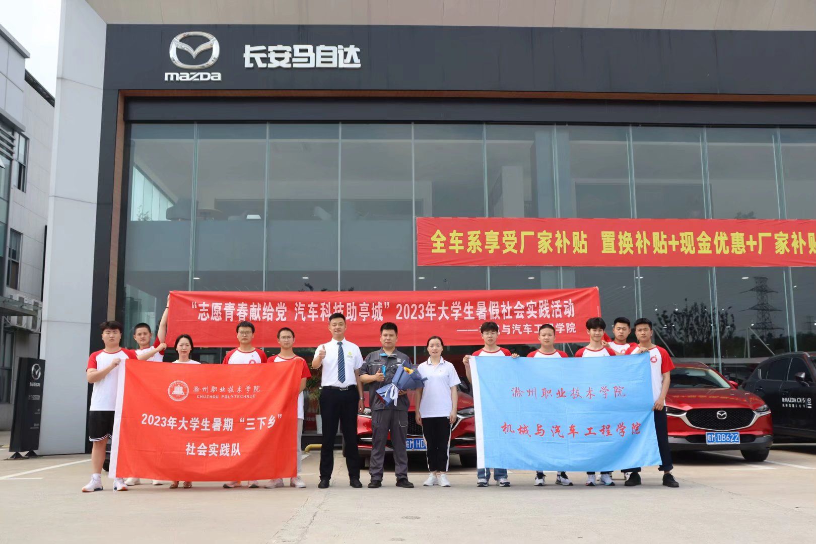 6月21日上午,Beat365唯一官方网站机械与汽车工程学院青春引擎实践小分队在倪子旭、陈琴两位老师的带领下前往滁州马自达4S店开展暑期“三下乡”社会实践活动。