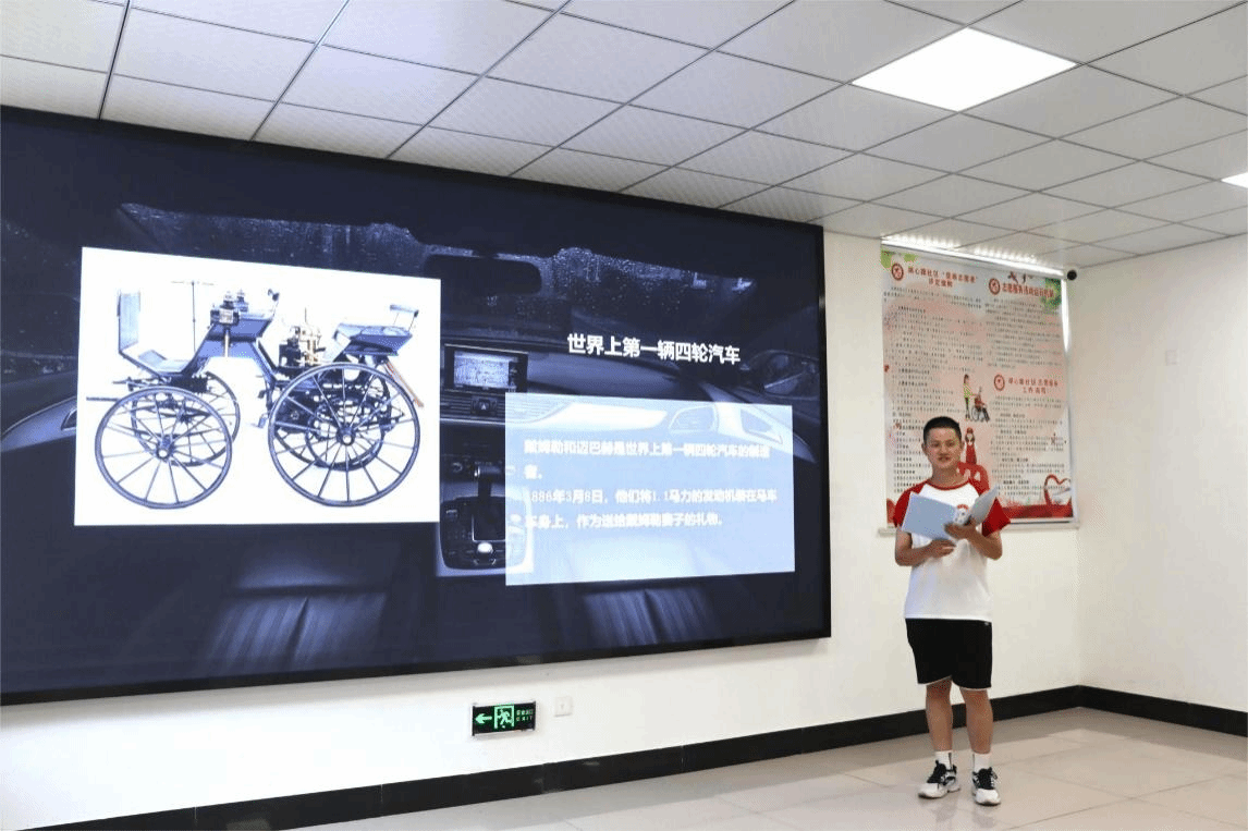 为深入学习贯彻习近平总书记关于职业教育的重要指示精神和全国职业教育大会精神,大力宣传职业教育“前途广阔、大有可为”,青春引擎实践小分队前往了湖心路社区开展“汽车知识宣讲”活动。实践成员队彭树干向大家介绍了汽车的发展史、汽车的构造原理等,并针对目前汽车行业发展趋势及通过国内外行业形势进行对比,让大家了解汽车行业的前景与发展。参与讲课的志愿者充分发挥自身的特长和优势,同时结合社区实际情况,为十几名社区“学生”讲述了机汽特色,以寓教于乐的方式向大家传递积极向上的世界观、人生观、价值观。