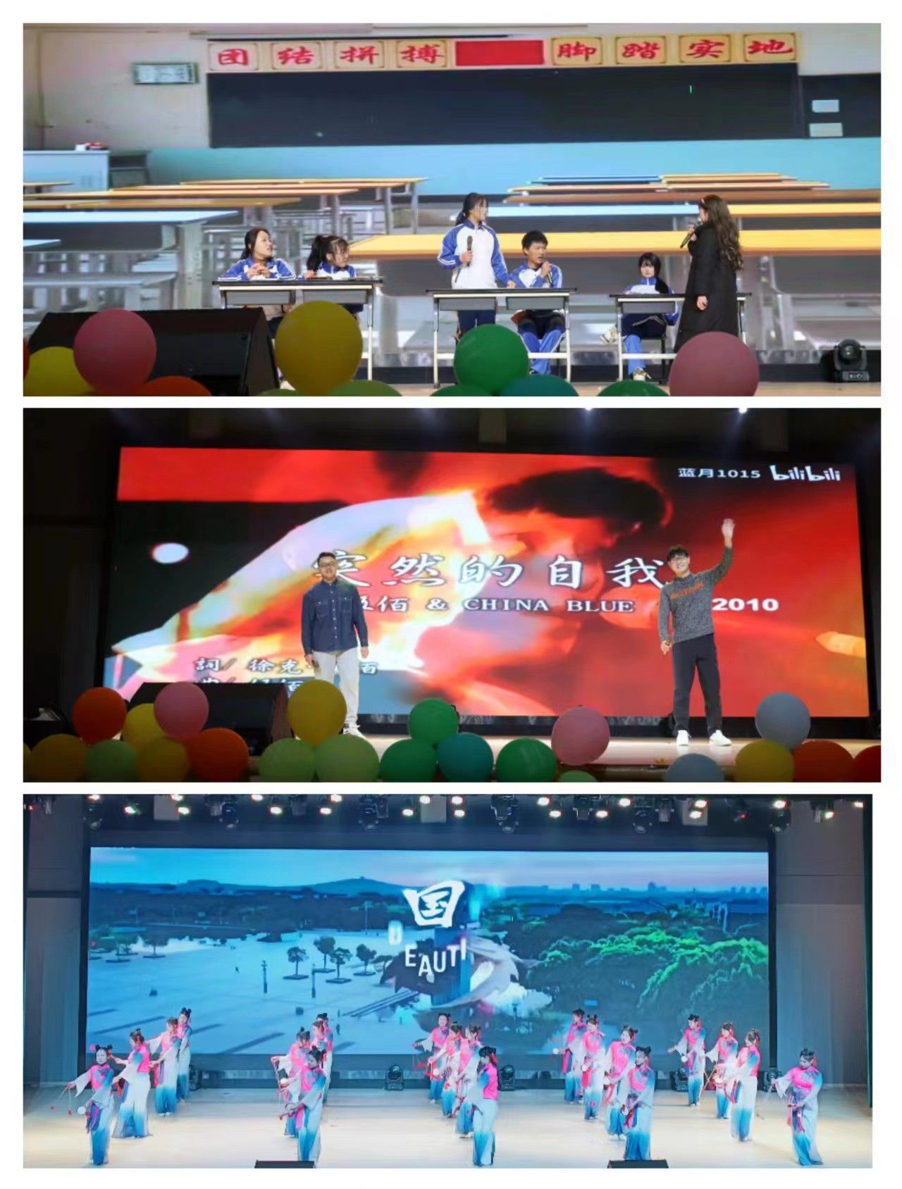最后,由刘旭冉老师领唱的歌曲《我和我的祖国》在全场的合唱中响起,将整个晚会推向了高潮。观众们齐声歌唱,表达了对祖国的热爱和祝福。