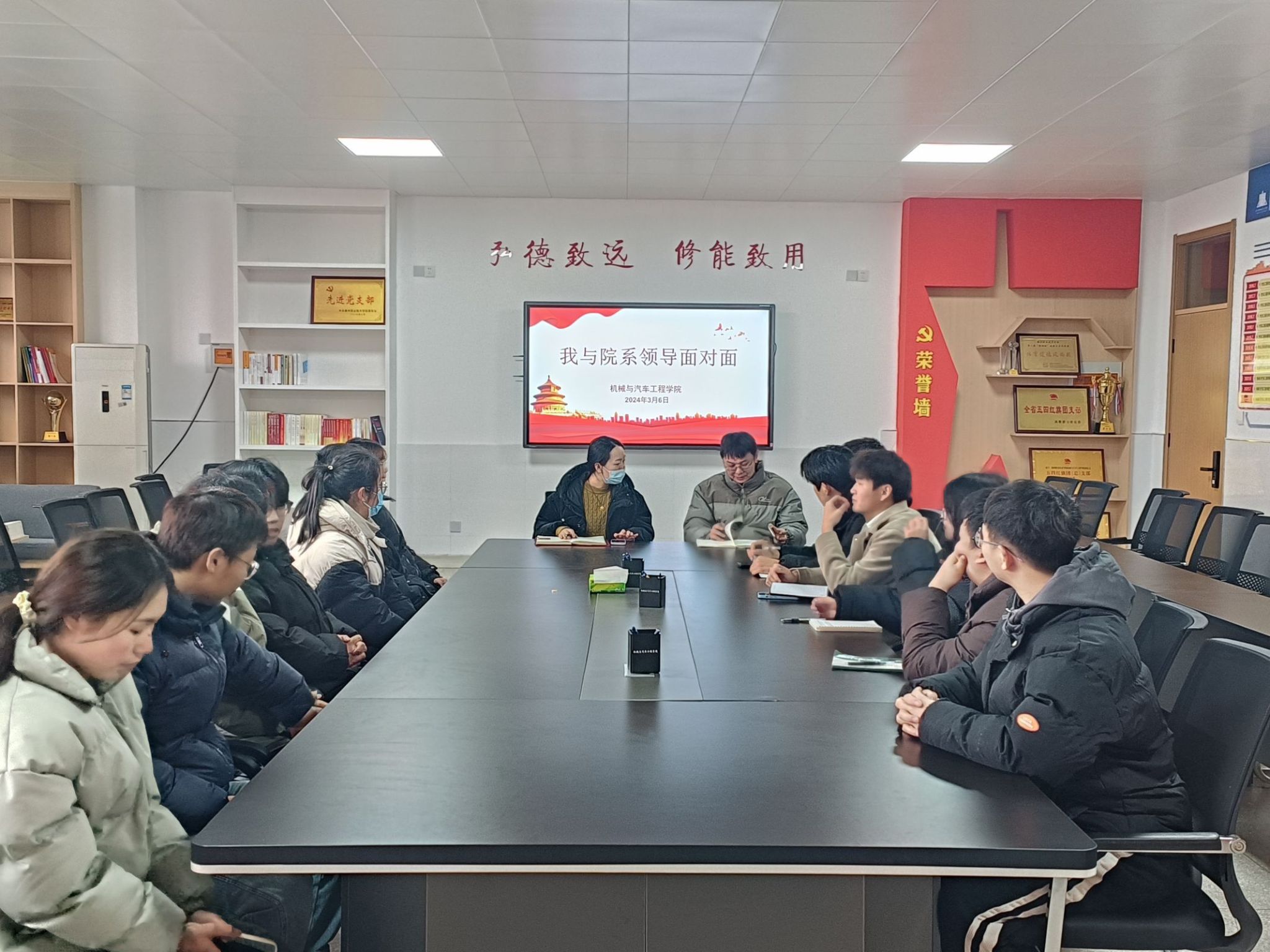 3月6日,机械与汽车工程学院于5210会议室举行“我与院系领导面对面”活动。学院团总支书记倪子旭、辅导员代表刘旭冉及部分班级学生代表参会。