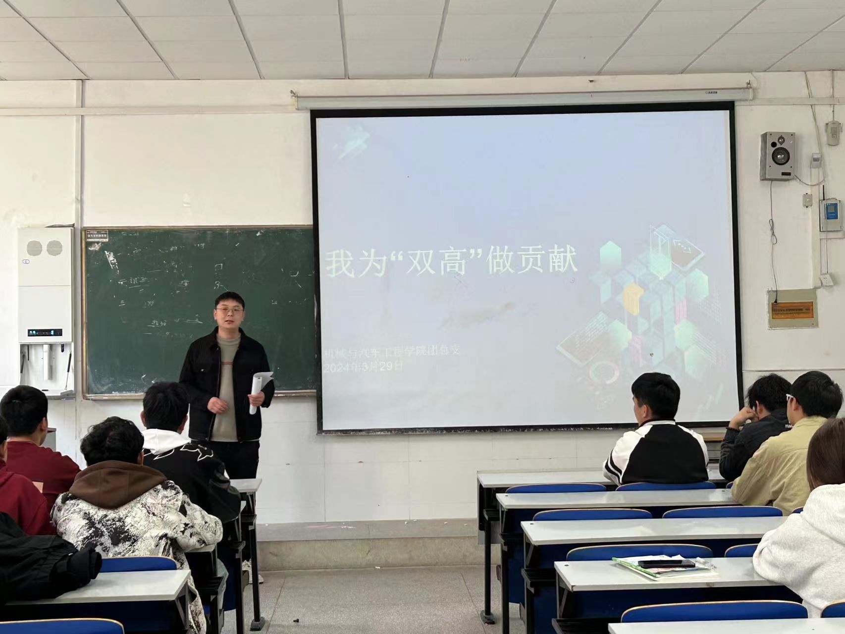 在追求教育现代化、质量提升的大背景下,我国高等教育正在经历前所未有的变革。为了引领职业教育服务国家战略、融入区域发展,促进产业升级,加快实现职业教育现代化的战略举措。因此,机械与汽车工程学院团总支于3月29日在5113教室开展了一场有关“双高校建设讲座”活动。