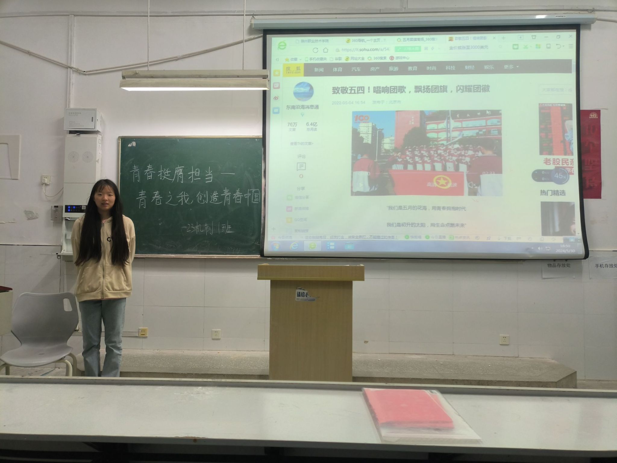 为了激发青年学子的创造力和活力,推动学院充满正能量的团结合作氛围。机械与汽车工程学院23机制1班团支部在5210教室组织开展了以“青春之我,创造青春中国”为主题的活动。