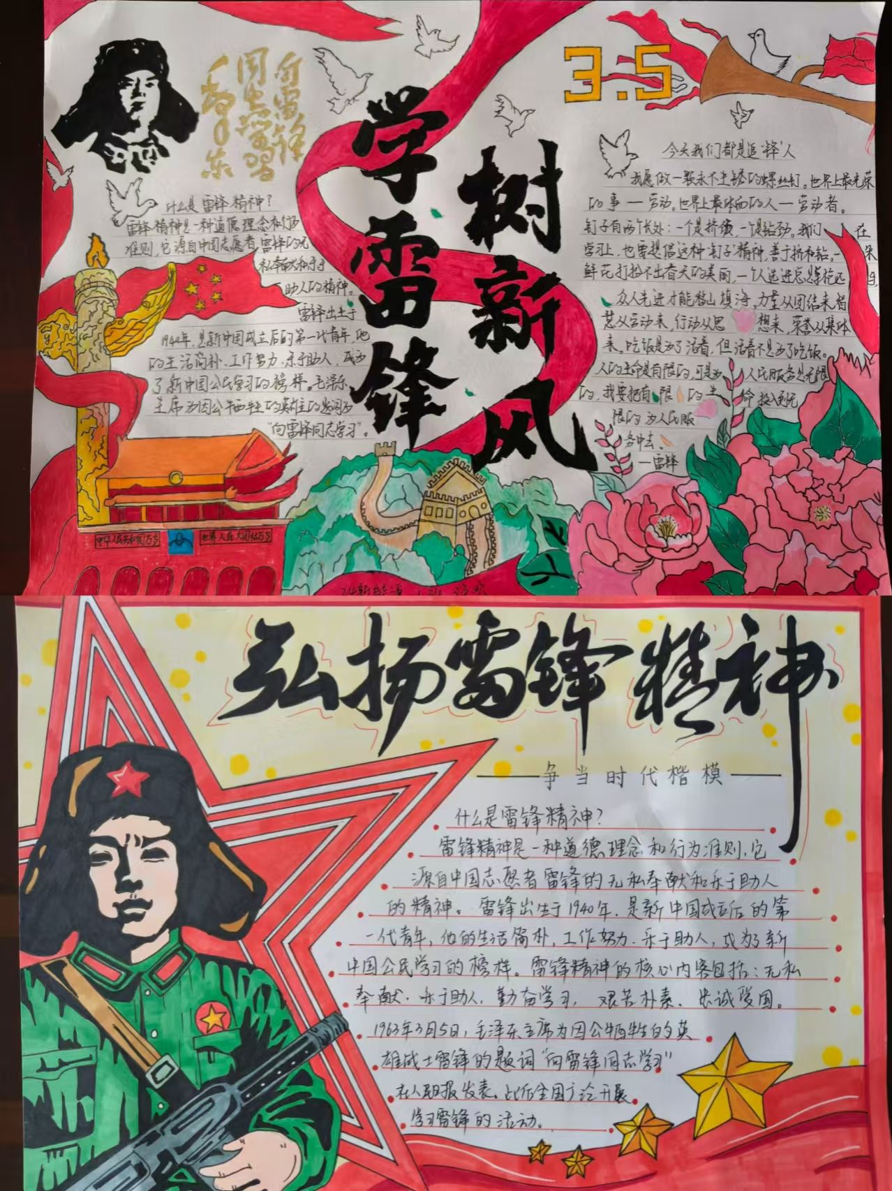 活动期间,同学们以班级为单位积极投入到手抄报的创作中。大家围绕雷锋的生平事迹、雷锋精神的内涵以及在新时代如何践行雷锋精神等内容,用手中的画笔创作出一幅幅主题鲜明、内容丰富、形式多样的手抄报。有的作品用鲜艳的色彩描绘出雷锋助人为乐的场景,有的则用文字深入阐述对雷锋精神的理解和感悟,还有的结合当下社会热点,展现新时代青年对雷锋精神的传承与发扬。经过评委们的认真评选,最终评选出了一、二、三等奖及优秀奖若干名。